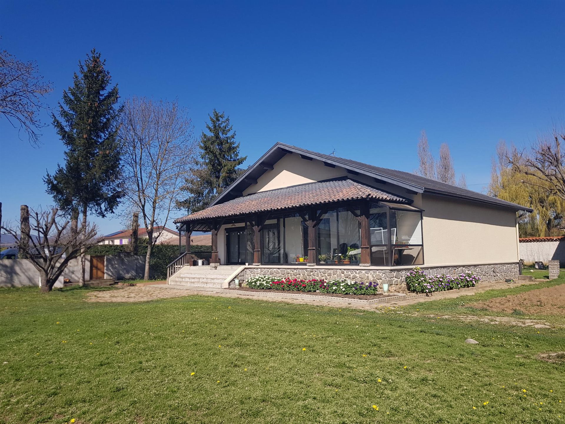 En Exclusivite - Maison de caractère plain pied pleine de charme de 174m2 entièrement rénovée sur un terrain de 1851m2 (entièrement constructible) avec dépendances de 35m2 + abris voiture et piscine à rénover. Elle offre 4 grandes chambres de 12 à 20m2, une salle d'eau et 2 toilettes. Une pièce à vivre de 64m2 lumineuse et agréable avec poutre apparente, cheminée monumentale, dont une cuisine de 25m2 entièrement équipée. De grandes baies vitrées s'ouvrant sur une grande terrasse et une véranda de 20m2 avec vue sur la piscine. Située dans un quartier résidentiel calme et agréable à proximité des commodités, à 2 Kms de la gare, à 20 mn de Vienne et 45 mn de Lyon. - Annonce rédigée et publiée par un Agent Mandataire -
