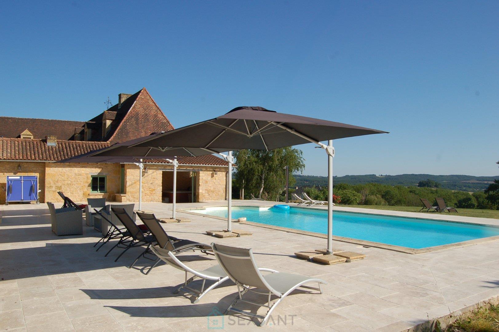 Au coeur du pittoresque Périgord vert, découvrez cet ensemble immobilier en pierre du XVIIe siècle, somptueusement restauré dans le respect de son authenticité tout en intégrant le confort moderne. La propriété se compose d'une habitation principale de 450 m² dotée d'un superbe grenier aux poutres apparentes offrant un beau potentiel d'aménagement ainsi que de deux maisons indépendantes de 150 m² chacune. A cela s'ajoutent une salle de cinéma, une salle de jeux, un espace dédié au yoga et à la méditation, un espace bien-être avec jacuzzi, sauna, salle de massage ainsi qu'une grange de 80 m². L'ensemble est équipé d'un système de chauffage central par géothermie, garantissant un confort optimal tout au long de l'année. Le domaine s'étend sur un terrain arboré de 2,3 hectares environ, véritable écrin de verdure, agrémenté d'une piscine chauffée de 12 x 6. Ce cadre naturel, paisible et préservé, invite à la détente et à la sérénité. Ce luxueux havre de paix est parfaitement adapté à un projet familial ou à une activité d'hébergement touristique haut de gamme. Ce joyau historique constitue un lieu d'exception, où vos aspirations les plus nobles prennent vie et s'épanouissent dans un cadre unique d'une nature luxuriante et préservée. Honoraires Ttc charge vendeur - Agent commercial Sextant France - Damien Masse - - Plus d'informations sur réf. 25118.