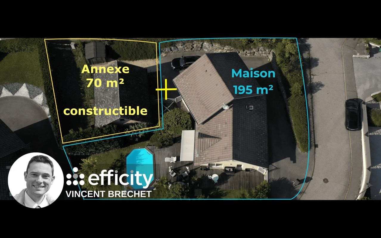 74350 - Cruseilles Centre - Maison Individuelle 195 m² + Annexe 70 m² Aménageable - Soleil, Vue et Piscineà découvrir en vidéo (sur SeLoger, cliquer sur Visite 3D) Un climat privilégié?Cruseilles bénéficie d'un ensoleillement 15 à 20 % supérieur à celui du bassin genevois (? 1 850-1 900 heures/an) et échappe très souvent aux nuages bas de la période hivernale. Secteur paisible - Voisinage de qualité?Quartier résidentiel, au calme, vue sur les montagnes, tout en étant à deux pas des commodités : école/collège, pharmacie, supermarché, maison médicale, clubs sportifs... Tout est accessible à pied. Maison familiale de 195 m² (+ annexe 70 m² - Cf. Ci-Dessous), 6 chambres, combles aménagés et double garage (44 m²)Un bien sain, chaleureux et fonctionnel, pensé pour accueillir une grande famille avec des espaces bien répartis pour préserver l'intimité de chacun (demi-niveaux indépendants avec chacun chambres et sanitaires).EXTÉRIEURS Terrain de 1063 m² m² idéalement exposé sud-ouest Jardin arboré et entièrement clôturé Piscine hors-sol couverte Grande terrasse en bois imputrescible (? 60 m²) 3 places de parking extérieures (hors garage)INTÉRIEURSous-sol (rez-de-chaussée) Double garage 44 m² motorisé et télécommandé Chaufferie/buanderie (avec arrivées d'eau pour appareils électroménagers) Grand vide sanitaire d'1 m de hauteur sous la maison, pour du stockageRez-de-jardin Cuisine/séjour/salle à manger lumineux 44 m² Wc séparés1er demi-niveau Chambre n°1 : 10 m² Chambre n°2 : 12 m² Chambre n°3 : 13 m² Salle de bains : 7 m²2ème demi-niveau Chambre n°4 : 21 m² Chambre n°5 : 10 m² Salle d'eau : 6 m² Dressing 5 m² Wc séparés3ème demi-niveau Combles aménagés 47 m² au sol (dont 35 m² 1,80 m), espace idéal pour salle de jeux, home-cinéma, salle de sport, etc...CARACTÉRISTIQUES Techniques Chaudière gaz économe (? 170 €/mois pour chauffage + eau chaude) Chauffage au sol au rez-de-chaussée Radiateurs aluminium à l'étage Menuiseries Pvc double vitrage Stores électriques (manuels à l'étage) Toiture en excellent état Bonus - Dépendance Constructible INCLUSESur la parcelle adjacente d'environ 300 m² : actuellement un hangar de 50 m² au sol, aménageable en T3 de 70 m² (permis de construire accordé).Caractéristiques du permis de construire : Belle pièce de vie côté sud (opposé maison principale) 2 belles chambres dans la mezzanine (hauteur 1,80m) 2 grandes baies vitrées et 4 velux 3 places de parking Chemin d'accès indépendant= idéal pour loger de la famille (parents, enfants, amis, etc...), avoir un revenu locatif ou installer son cabinet ContactPlus d'informations et organisation de visites - Vincent Brechet - Efficity Genevois Les informations sur les risques auxquels ce bien est exposé sont disponibles sur le site Georisque : georisques. Gouv. Fr Vincent Brechet - Ei - est Agent Commercial mandataire en immobilier, immatriculé au Registre Spécial des Agents Commerciaux du Tribunal de Commerce de Thonon-les-Bains sous le n°.Siège social du mandant : effiCity, 48 avenue de Villiers - 75017 Paris - Société par Actions Simplifiée, société au capital de 132 373,05 euros, immatriculée au Rcs Paris 497 617 746 et titulaire de la Carte professionnelle Cpi 002 025 - Cci Paris Idf - Caisse de Garantie : Galian Assurances 89 rue de la Boétie 75008 Paris