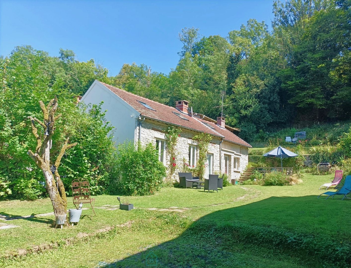 A 5 min de Vétheuil, au coeur du hameau de la Goulée : Maison en pierre du Vexin proposant au Rdc une entrée sur cuisine dînatoire, salon avec poêle à bois, chambre et salle de douche avec Wc. A l'étage en partie mansardée une pièce dite palière à usage de bureau desservant 2 chambres. Petit studio récemment rénové avec accès indépendant en rez-de-chaussée avec salle de bains avec Wc. Cave à usage de buanderie. Jardin avec vue dégagée proposant aussi en partie haute un espace à aménager (atelier) Sextant France - Yann Wegerhoff agent basé à Vetheuil - - Plus d'informations sur réf. 27108 Honoraires à la charge du vendeur Agent Commercial