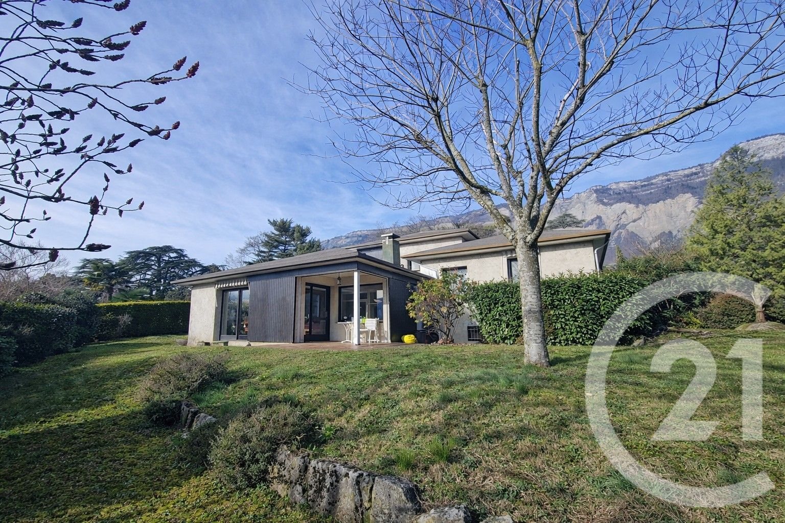 Emplacement d'exception ! Située sur la commune recherchée de Saint Ismier, à deux pas du centre et à proximité immédiate des commodités, maison de Type 6 de 145 m² habitables (189 m² de surface totale) sise sur un terrain clos et arboré de 1347 m². Niché dans un lotissement au calme avec piscine réservée aux propriétaires et avec gardien, ce bien offre une vue imprenable sur la chaine de Belledonne et sur la dent de Crolles. Il se compose d'une vaste entrée donnant sur un séjour double de 38 m² face aux montagnes, d'une cuisine de 12 m². Et d'une salle d'eau / Wc. En demi-palier, deux chambres de plain pied et une salle de bains, A l'étage on découvre 3 chambres, une salle d'eau et un Wc indépendant En annexe un garage, une pièce / bureau et une cave. Construction de 1977 parfaitement entretenue, nécessitant néanmoins une modernisation. Opportunité rare à découvrir sans tarder ! Prix : euros, Honoraires charge vendeur. Surface Loi Carrez : 145 Honoraires à la charge de l'Acquéreur : non Lieu : Isère (38)