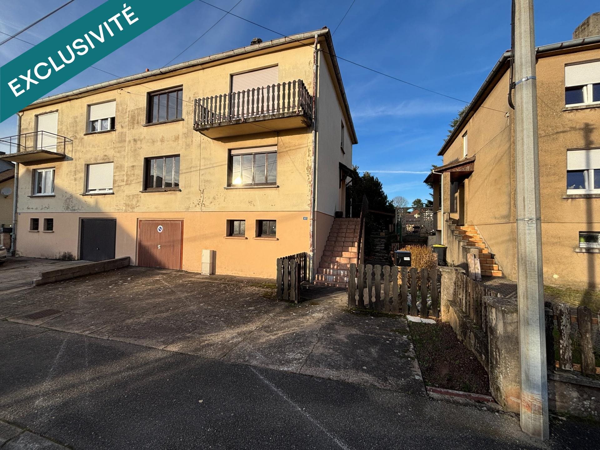 Nous vous proposons à la vente en exclusivité cette maison dans un beau quartier de Creutzwald. Le bien est situé au Garang, à quelques pas du centre ville et de toutes commodités. De plus cette maison est située à 2min de la frontière Allemande et à 45min de la frontière Luxembourgeoise, l'A4 à 15min tout comme Saint-Avold. Cette habitation vous propose en son premier niveau, un grand salon et séjour très lumineux donnant accès à la cuisine avec vue jardin. Cet étage vous propose également une salle de bain ainsi qu'un petit débarras. A l'étage, vous retrouvez la partie nuit avec 4 chambres lumineuse ainsi qu'un accès au comble. De plus, un sous-sol complet, avec un joli garage. Les données techniques : La maison dispose d'un chauffage fioul, dalles bétons à chaque niveau (y compris entre le 1er et les combles), des menuiseries doubles vitrage bois anciennes... Les informations sur les risques auxquels ce bien est exposé sont disponibles sur le site Géorisques : Prix de vente : 116 900 € Honoraires charge vendeur Contactez votre conseiller Safti : Florent Vani - Ei - Agent commercial immatriculé au Rsac de Metz sous le numéro 912 702 669 Surface terrain : 650 m². Honoraires à la charge du Vendeur Bien En copropriété : Non Lieu : Moselle (57)