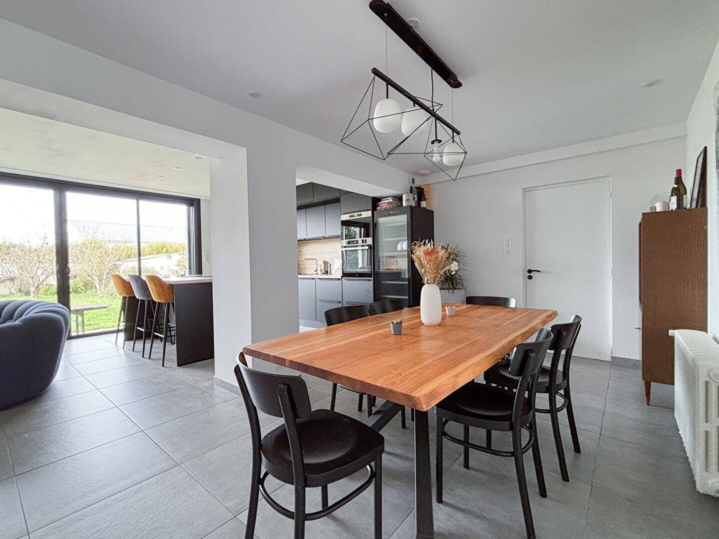 Ste Gemmes Sur Loire/ Proche Angers, Sur la commune prisée de Sainte-Gemmes-sur-Loire, aux portes immédiates d'Angers, découvrez cette charmante maison des années 60 entièrement rénovée avec soin, idéalement située à seulement 3 kilomètres de la Gare d'Angers-Saint-Laud. Un emplacement stratégique qui permet de rejoindre rapidement le centre-ville, même à vélo, tout en profitant d'un environnement calme et résidentiel. D'une surface utile de 120 m² , cette maison a été repensée récemment pour offrir un cadre de vie plus fonctionnel et résolument moderne. Dès l'entrée, équipée d'une penderie, vous découvrez un espace chaleureux et lumineux. Le salon-séjour traversant, exposé est/ouest, bénéficie d'une lumière naturelle tout au long de la journée et s'ouvre sur une magnifique cuisine entièrement aménagée et équipée. Cet espace de vie de près de 50 m² constitue le véritable coeur de la maison. Une immense baie à galandage prolonge la pièce vers l'extérieur et offre une vue dégagée sur le jardin, créant une belle continuité dedans-dehors très appréciable aux beaux jours. Le rez-de-chaussée dispose également d'un espace bureau ouvert, idéal pour le télétravail ou un coin lecture, ainsi que d'une buanderie/chaufferie de 19 m², particulièrement pratique et non comptabilisée dans la surface habitable de 101 m². Des Wc indépendants complètent ce niveau. A l'étage, l'espace nuit se compose de trois chambres, d'une salle d'eau moderne et de Wc séparés, offrant un agencement parfaitement adapté à la vie de famille. A l'extérieur, vous serez séduits par un terrain d'environ 600 m², sans vis-à-vis, exposé ouest pour profiter pleinement du soleil en fin de journée. Le jardin accueille un garage en fond de parcelle ainsi que deux dépendances idéales pour le stockage ou les projets personnels. Un stationnement extérieur est également possible. Entièrement rénovée, lumineuse, idéalement située et prête à accueillir ses nouveaux propriétaires, cette maison réunit tous les critères d'un véritable coup de coeur. Une opportunité rare sur le secteur, à visiter sans tarder. Dpe: C Référence annonce : 8270 Les informations sur les risques auxquels ce bien est exposé sont disponibles sur le site Géorisques : (5.00 % honoraires Ttc à la charge de l'acquéreur.) Etat général : Bon Etat Surface séjour : 49.44 Surface terrain : 548 Surface terrasse : 33 Année de construction : 1961 Chauffage : Individuel Chauffage (mécanisme) : Radiateur Chauffage (mode) : Gazdeville Fenêtre : Mixte Alu - Pvc Cuisine : Ouverte Aménagée Equipée Fibre optique : Oui Numéro de mandat : 8270 Précision localisation : Route de Bouchemaine Honoraires à la charge de : Acquéreur Pourcentage des Honoraires à la charge de l'Acquéreur : 5 % Prix net vendeur : 475000 euros Bien En copropriété : Non Procédure sur le Syndicat des copropriétaires : Nc Taxe foncière : 1500 euros Lieu : Maine-et-Loire (49)