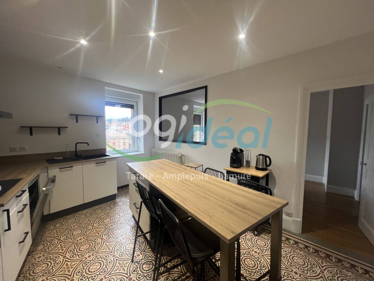 Rare - A deux minutes de la gare Sncf (Ligne LYON-Roanne) et des commerces de proximité, Appartement, situé au rdc, entièrement rénové avec goût comprenant entrée, salon, séjour donnant sur cuisine équipée, 2 chambres et sdb avec douche et baignoire. Grande terrasse et jardin individuel viennent compléter l'ensemble. Idéalement situé. A venir découvir.