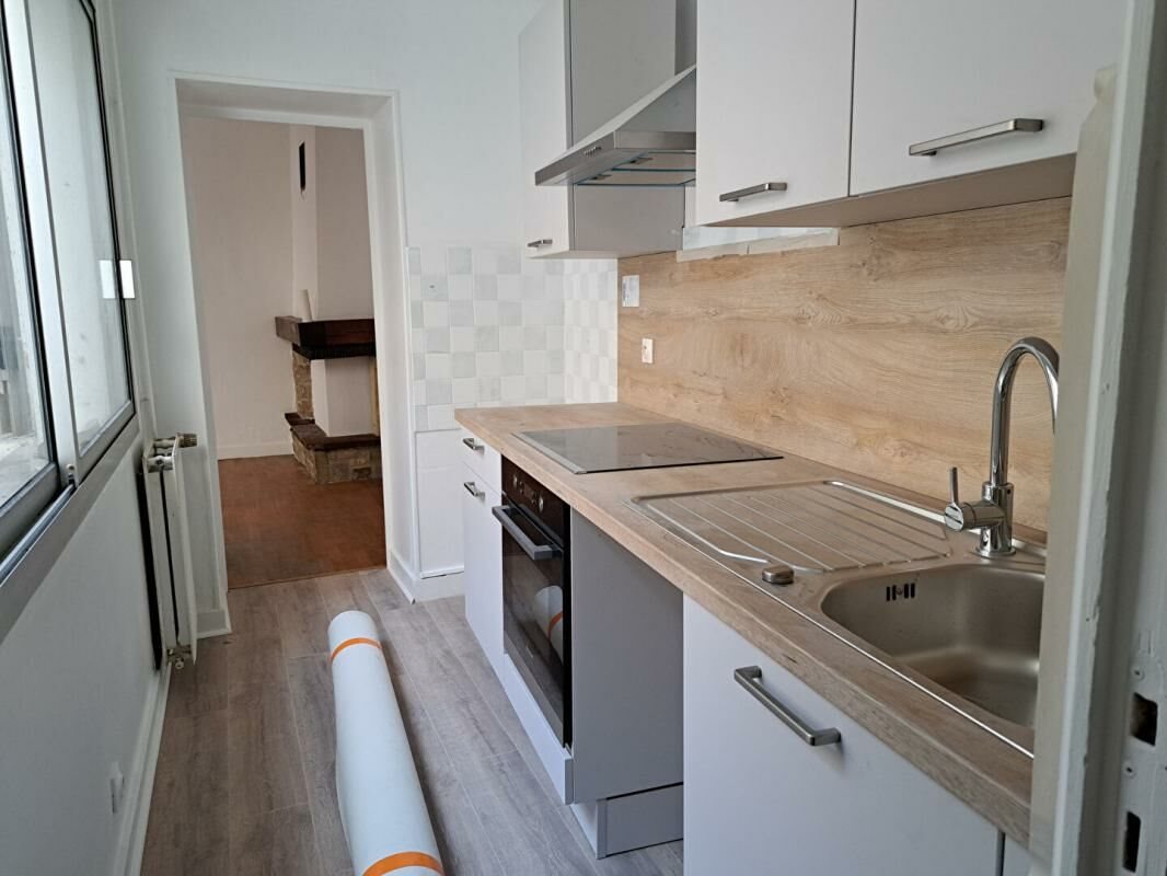 Centre-Ville appartement en duplex de 100 m² habitables comprenant salon séjour de 29 m² cuisine aménagée, 3 chambres dont 1 au rdc, 1 bureau, salle de bains, wc, 1 buanderie, 1 terrasse, chauffage central gaz individuel. Libre Avril