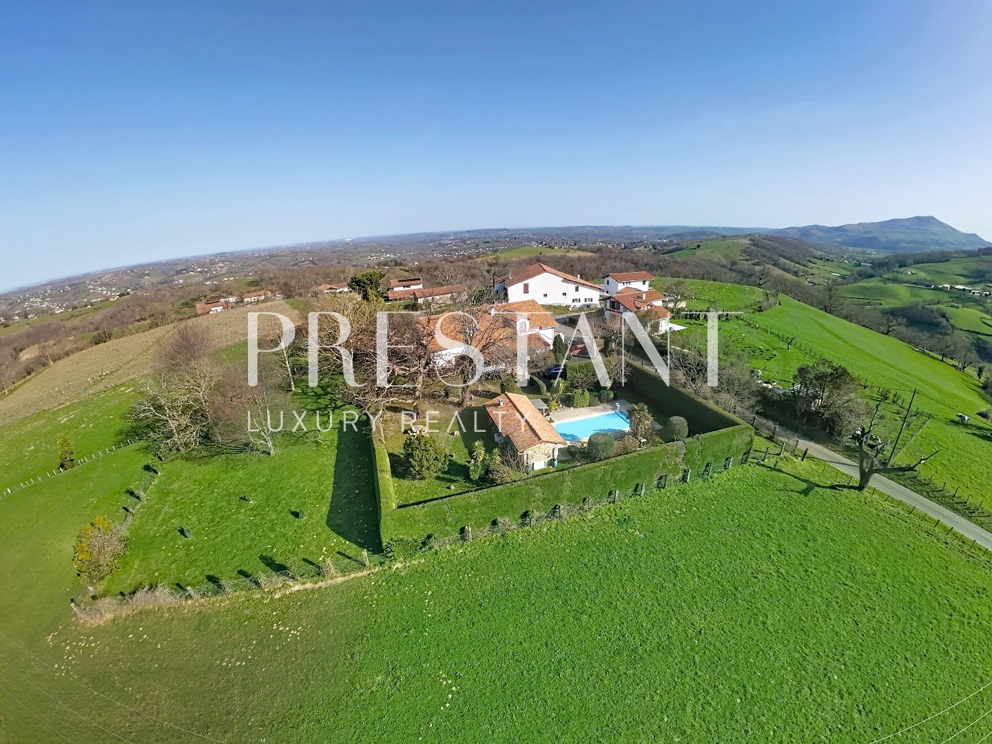 Dominant les terres d'Espelette, là où le relief s'affirme et où le silence reprend ses droits, cette demeure de caractère érigée en 1750 s'impose par sa stature et son authenticité. Développant une surface d'environ 300 m², la bâtisse a fait l'objet d'une rénovation magistrale menée par son propriétaire actuel, une métamorphose qui a su préserver la force de l'architecture originelle tout en y créant de vastes volumes de vie. L'implantation de la propriété constitue un privilège rare, offrant un dialogue permanent avec les éléments. Au pied du Mondarrain, dont les parois rocheuses et les versants sauvages dessinent un environnement protecteur, la maison domine les hauteurs du village. Pourtant, le regard ne s'y arrête pas : il s'échappe vers l'ouest pour embrasser les courbes verdoyantes du Pays Basque jusqu'à rencontrer, à l'horizon, la ligne azur de l'Océan. À l'intérieur, la rénovation a privilégié l'espace et la diversité des lieux de vie. Les dix pièces de la demeure, dont six chambres, offrent une modularité rare au gré des projets. Les volumes de réception conservent leurs matériaux d'époque, sublimés par des finitions sobres qui laissent toute la place au tableau naturel changeant derrière chaque ouverture. Attenante à la maison, une étable d'environ 130 m² offre un potentiel de développement remarquable, invitant à imaginer de nouveaux espaces de réception ou de détente après rénovation. Le terrain, en pente douce, accueille une piscine parfaitement intégrée à son environnement minéral. Un pool-house, conçu comme une véritable extension de la demeure, permet de profiter de la sérénité des lieux, de la fraîcheur du matin jusqu'aux lumières dorées du crépuscule. Cette propriété singulière s'adresse aux esthètes en quête d'un refuge historique, à la croisée des sentiers de crêtes et de la brise atlantique. PRESTANT Luxury Realty - Jean-Clément Roujean - - Plus d'informations sur (réf. ). Les informations sur les risques auxquels ce bien est exposé sont disponibles sur le site Géorisques :