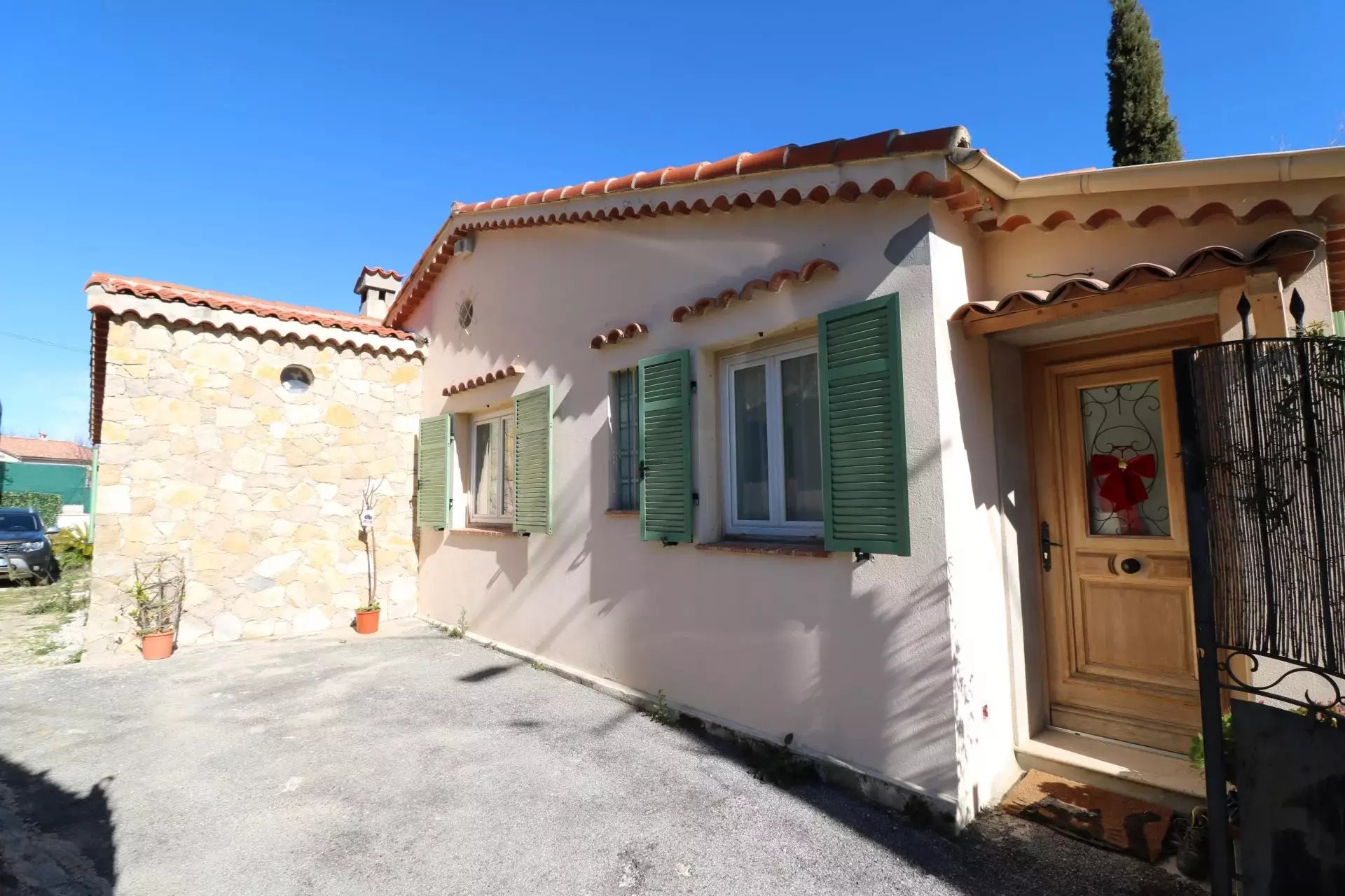 Venez visiter avec Provençalpes : Cette belle maison individuelle de type trois pièces de 80m² de plain pied composée de : une entrée, salon avec poêle à bois / salle à manger avec cuisine ouverte entièrement équipée donnant sur terrasse carrelée, deux chambres dont une avec mezzanine, salle de bains avec Wc. A l'extérieur, idéalement exposée : une piscine (avec filtration au sel), plages tout autour, terrain de 638m² entièrement clôturé et facile d'entretien. En sous-sol : beau vide sanitaire faisant office de caves. Parkings faciles, petit local et débarras. Façade en pierres. Portail électrique. Proche du village et de ses commodités. Dpe : En cours A visiter sans tarder!