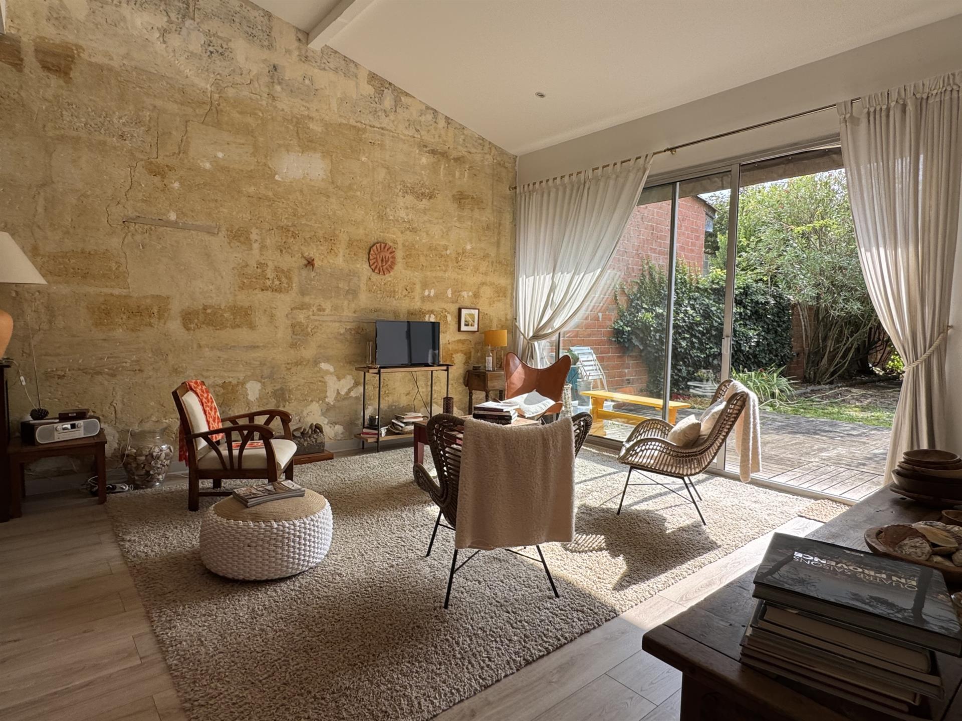 Dans rue réputée du quartier Croix blanche, à deux pas des écoles de renom et des commerces, maison bordelaise de plain pied rénovée ayant gardée son charme et des prestations anciennes, comprenant une entrée, une pièce sur rue pouvant être indépendante avec kitechenette, salle d'eau et toilette, salon avec cuisine ouverte donnant sur jardin, deux chambres, bureau salle de bains avec toilette. Emplacement, charme, volume, lumière, que d'atouts !