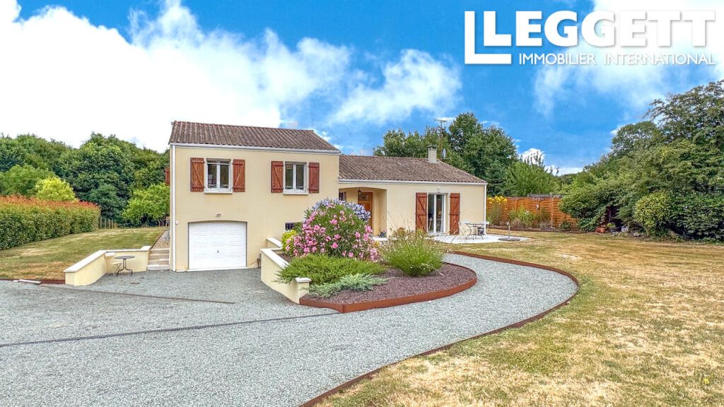 A42157nha85 - In a peaceful rural village, this beautifully presented home (built in 2007) offers 121 m² of comfortable, modern living space on a generous 5,594 m² plot of mature garden and meadow. Down a gated driveway, you enter via a covered porch into a welcoming hallway with cloakroom, leading into a bright, open-plan lounge and dining area (42 m²) with large windows and patio doors opening to both the front and rear gardens — perfect for all-day light and relaxing indoor-outdoor living.The fully fitted kitchen (13 m²) is ideal for family meals, while a half-flight of stairs leads to the upstairs landing, two well-sized bedrooms (each about 12 m²), a family bathroom, plus a master suite (15 m²) with its own shower room (7 m²).On the lower level, you will find a double garage (30 m²), a useful workshop (16 m²) and a utility room with plumbing for a washing machine and a built-in sink (12 m²).Outside, the grounds are beautifully laid out with lawned areas, mature trees, landscaped patios front and back, a brick-built barbecue, and a private meadow - offering plenty of space for entertaining, relaxing or even a small hobby project.All measurements are approximate.Location and access:The property is ideally situated in the peaceful village of La Caillère-Saint-Hilaire (85410), 13km from Chantonnay (around 15 minutes by car), where you’ll find a full range of amenities including a school, shops, pharmacy, bakery, cafés, and a Ter train station.Local daily essentials such as a mini-market (Spar), a local restaurant, tabac/bar, bank with cashpoint, and a mobile butcher are available in the village itself – all within walking or cycling distance.Beaches and swimming:The nearby Lac de Touchegray, suitable for swimming and leisure, is located just 12 km away and is rated as having very good water quality.The Atlantic coast beaches, including those at Talmont-Saint-Hilaire and Les Portes-en-Ré (Plage de Trousse-Chemise), are 60 km away.Local attractions and activities:The famous Puy du Fou historical theme park is around 30 km away.The stunning Marais Poitevin, known as the "Green Venice", is 30 km away.Several countryside walking trails, including the well-known “Five Oaks” trail (11 km route), start directly from the village.Airports and transport links:La Rochelle–Île de Ré Airport: approx. 60 kmNantes Atlantique Airport: approx. 65 kmChantonnay Ter Train Station is nearby and connects to the regional “train des plages” service running between Les Sables d’Olonne and Saumur.BrochuresBrochure 1
