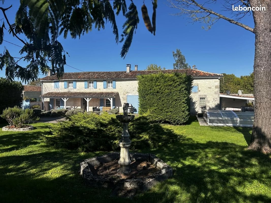 We are delighted to offer for sale this well maintained, characterful 3 bed 2 bath, stone, detached charentaise property boasting delightful private gardens with in ground swimming pool, all within a short distance of the bustling town of Pons with its range of shops, bars and restaurants. 40 minutes to the beaches of Royan and a short 10 minutes to the A10 motorway giving access both North and South with Bordeaux airport accessed in around an hour. The centrally heated property is approached via gates giving access to the driveway with parking for several vehicles leading to the garage. Internally the property offers entrance hall, a traditional farmhouse fitted eat-in kitchen incorporating a recently fitted oven and access to the front patio, utility room, 2 ground floor bedrooms and a bath/shower room. There is a charming, light and airy living room with woodburner and access to the front patio with staircase to the first floor mezzanine. The principal bedroom is off the mezzanine having an en suite shower room. There is also access to the large light filled attic space above the garage from the mezzanine. Flooring is tiled and laminate throughout the house with double glazing of the principal windows on the ground floor. Outside, the gorgeous private gardens extend to around 3500m² with areas of tended lawns interspersed with mature trees and shrubs. There is a superb heated in-ground pool with cover and recent new liner, a covered seating area ideal for al-fresco dining. A small store houses the outside Wc and adjacent to the garage is a large barn, comprising pump room for the pool, wine cellar and a large well-filled wood store with a well. An early inspection of this charming property is highly recommended. Price including agency fees : 325 000 € Price excluding agency fees : 306 604 € Buyer commission, tax included: 6%