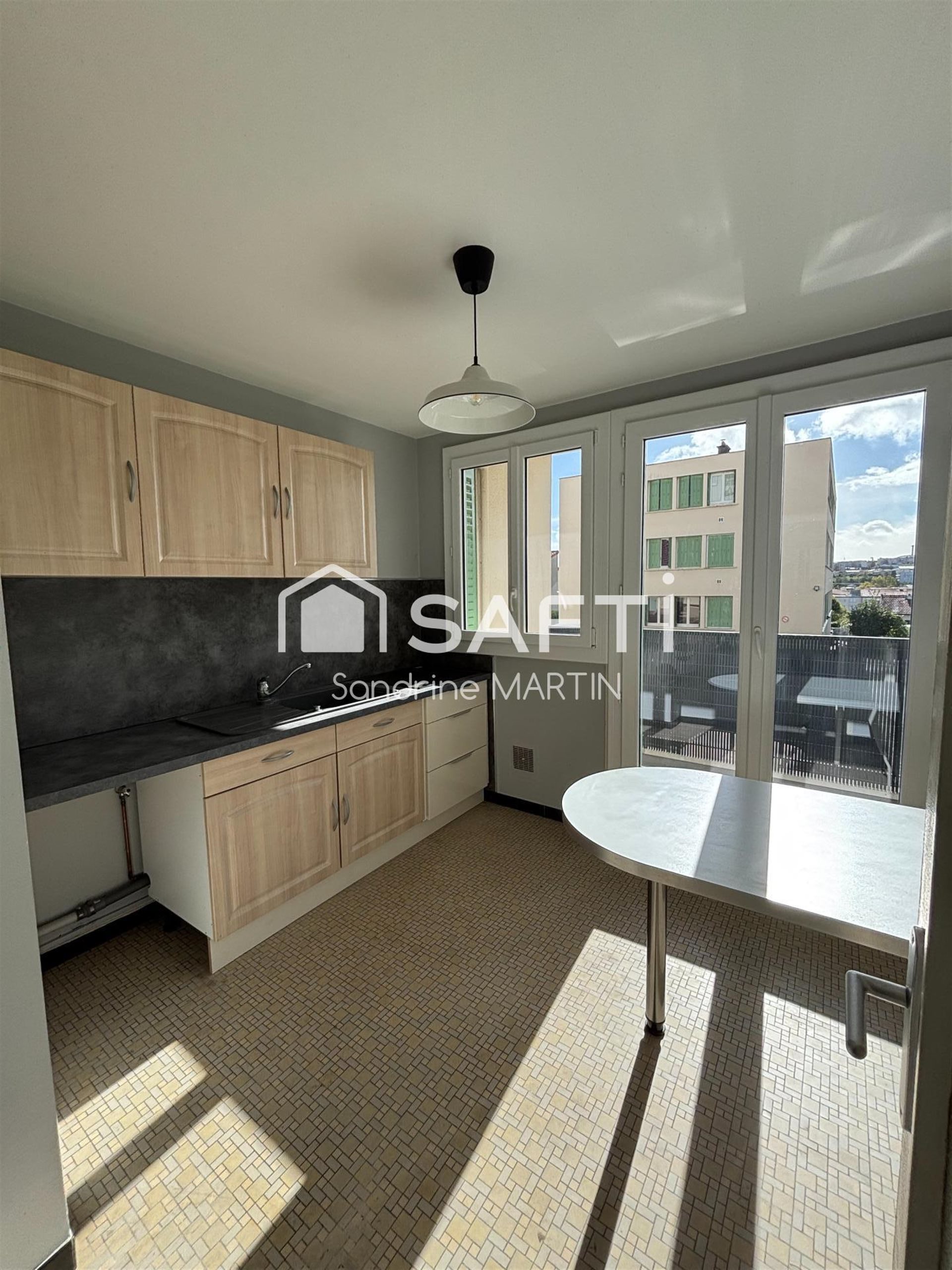 Situé rue Anatole France, à deux pas des commerces, transports et écoles, je vous présente ce très bel appartement T3 d'une superficie de 63m2 habitable au Rdc surélevé ( 4 marches seulement). Il se compose d'une entrée avec placard dressing, 1 cuisine aménagée avec balcon sur cour, 1 double séjour avec accès à sa véranda et stores électriques, 1 salle de bain, 1 wc séparé et 1 grande chambre avec dressing. Deux caves complètent ce bien. Nombreux stationnements gratuits dans la résidence. Fenêtres Pvc double vitrage. Pas de travaux ! Le bien comprend 3 lots, et il est situé dans une copropriété de 95 lots (les charges courantes annuelles moyennes de copropriété sont de 1900 € et le syndicat des copropriétaires ne fait pas l'objet d'une procédure citée à l'article L. 721-1 du code de la construction et de l'habitation). Les informations sur les risques auxquels ce bien est exposé sont disponibles sur le site Géorisques : Prix de vente : 108 000 € Honoraires charge vendeur Contactez votre conseiller Safti : Sandrine Martin, Tél. : , E-mail : - Ei - Agent commercial immatriculé au Rsac de Clermont-Ferrand sous le numéro 891 326 837