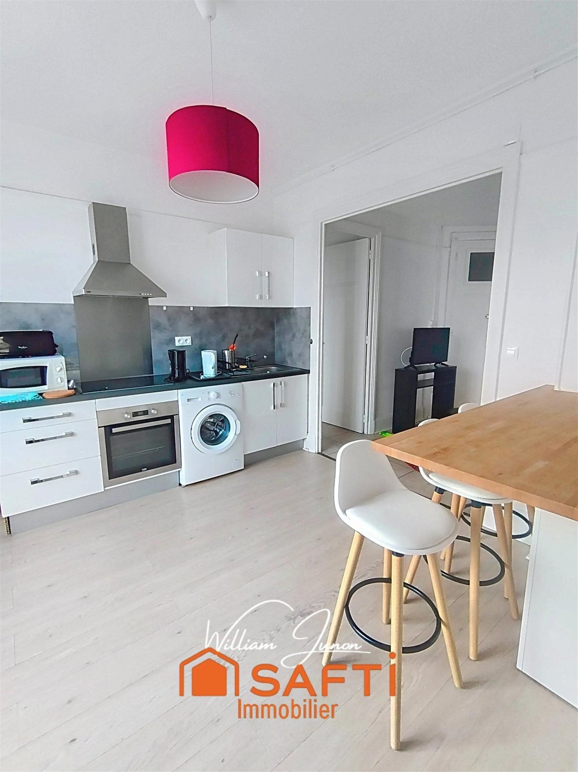 Situé rue du 11 Novembre à Saint-Étienne, cet appartement entièrement meublé est situé au 6ème étage d'un immeuble sécurisé et avec ascenseur, offrant une vue dégagée sur le campus universitaire Tréfilerie. Actuellement proposé à la colocation, à destination essentiellement des étudiants grâce à sa proximité immédiate avec la faculté Tréfilerie - Jean Monnet, ce bien est une belle opportunité pour un investissement locatif. Vous êtes situés à 1 minute à pied de l'arrêt de tram "Jean Monnet" et à quelques pas des commerces et du centre commercial Centre-Deux. L'appartement bénéficie d'un séjour ouvert sur une cuisine lumineuse créant ainsi un espace de vie de 23m². La cuisine est entièrement aménagée et équipée (coin repas, frigo, plaque de cuisson, four, hotte, micro-ondes, machine à laver, télévision...). Une salle salle d'eau avec fenêtre et des sanitaires indépendants complètent ce bien. Coté nuit, 3 chambres (11.30m², 10.30m² et 9.30m²) proposent un confort adapté à l'accueil des étudiants ou jeunes actifs. Enfin, un balcon filant, avec double-exposition, offre un agréable espace extérieur avec vue dégagée. L'ensemble de l'appartement dispose de fenêtres Pvc double-vitrage à isolation renforcée. Chauffage collectif (eau et radiateurs). Une cave en sous-sol complète ce bien. Baux individuels en cours. Le bien comprend 1 lot, et il est situé dans une copropriété de 21 lots (les charges courantes annuelles moyennes de copropriété sont de 2500 € et le syndicat des copropriétaires ne fait pas l'objet d'une procédure citée à l'article L. 721-1 du code de la construction et de l'habitation). Les informations sur les risques auxquels ce bien est exposé sont disponibles sur le site Géorisques : Prix de vente : 94 000 € Honoraires charge vendeur Contactez votre conseiller Safti : William Junon, Tél. : , E-mail : - Ei - Agent commercial immatriculé au Rsac de Saint Etienne sous le numéro 898 785 001