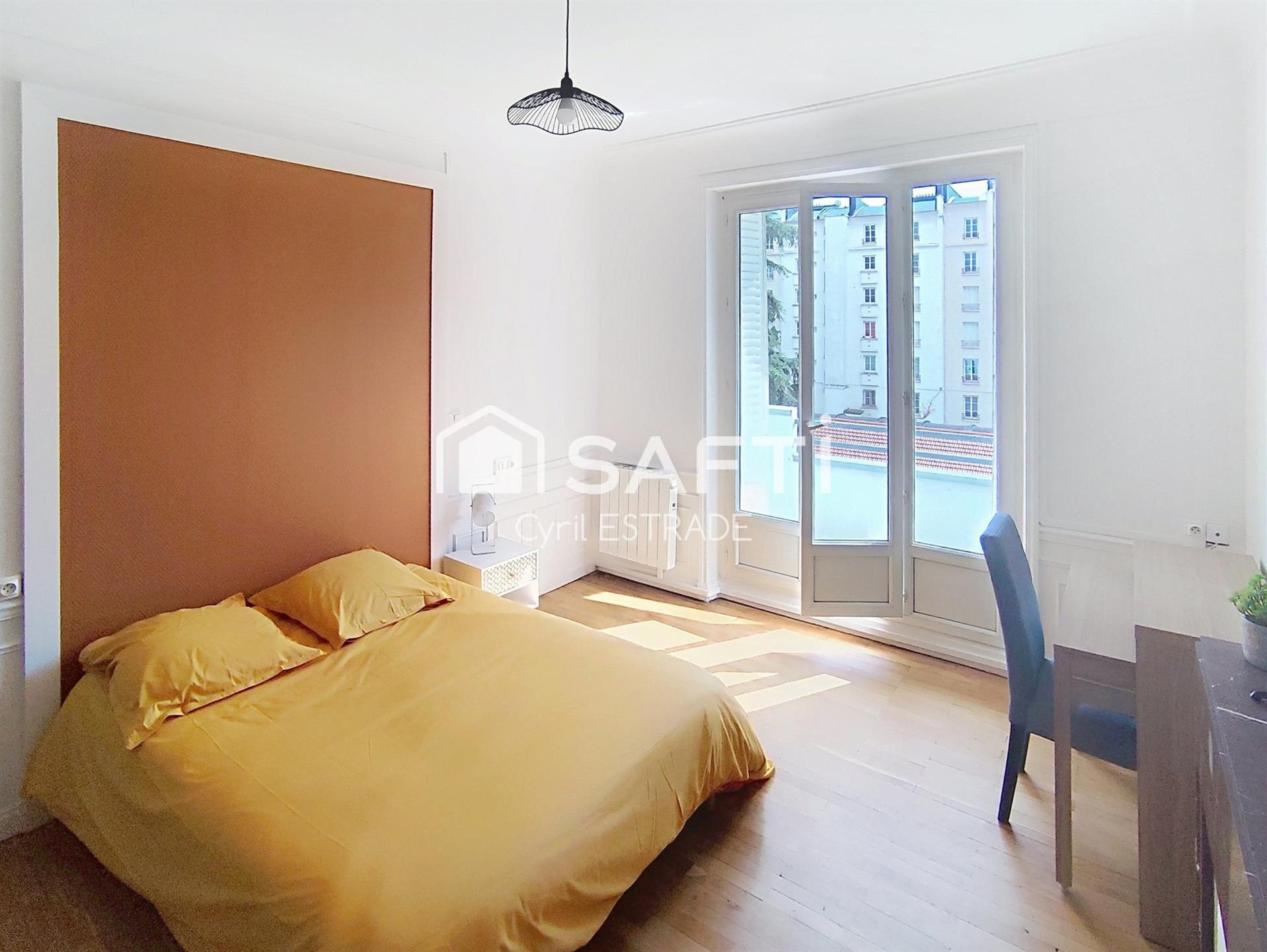 Vôtre conseiller Safti Cyril Estrade vous propose, Situé à seulement 100 mètres de l’École d’Architecture, au 3? étage d’un petit immeuble de caractère de type haussmannien, cet appartement de 98 m² est une opportunité rare. Entièrement refait à neuf et vendu meublé, il se compose de 4 chambres spacieuses, idéales pour de la colocation étudiante (chaque chambre se loue environ 400 €), ainsi qu’un espace de vie confortable et une cuisine équipée. Atouts : Emplacement recherché, proche des transports, écoles et commerces -Rendement locatif très intéressant -Immeuble à taille humaine, au calme -Bien rénové, aucun travaux à prévoir Un investissement clé en main, parfait pour un projet locatif sécurisé et rentable. Le bien comprend 2 lots, et il est situé dans une copropriété de 70 lots (les charges courantes annuelles moyennes de copropriété sont de 624 € et le syndicat des copropriétaires ne fait pas l'objet d'une procédure citée à l'article L. 721-1 du code de la construction et de l'habitation). Les informations sur les risques auxquels ce bien est exposé sont disponibles sur le site Géorisques : Prix de vente : 112 000 € Honoraires charge vendeur Contactez votre conseiller Safti : Cyril Estrade, Tél. : , E-mail : - Ei - Agent commercial immatriculé au Rsac de Saint-Etienne sous le numéro