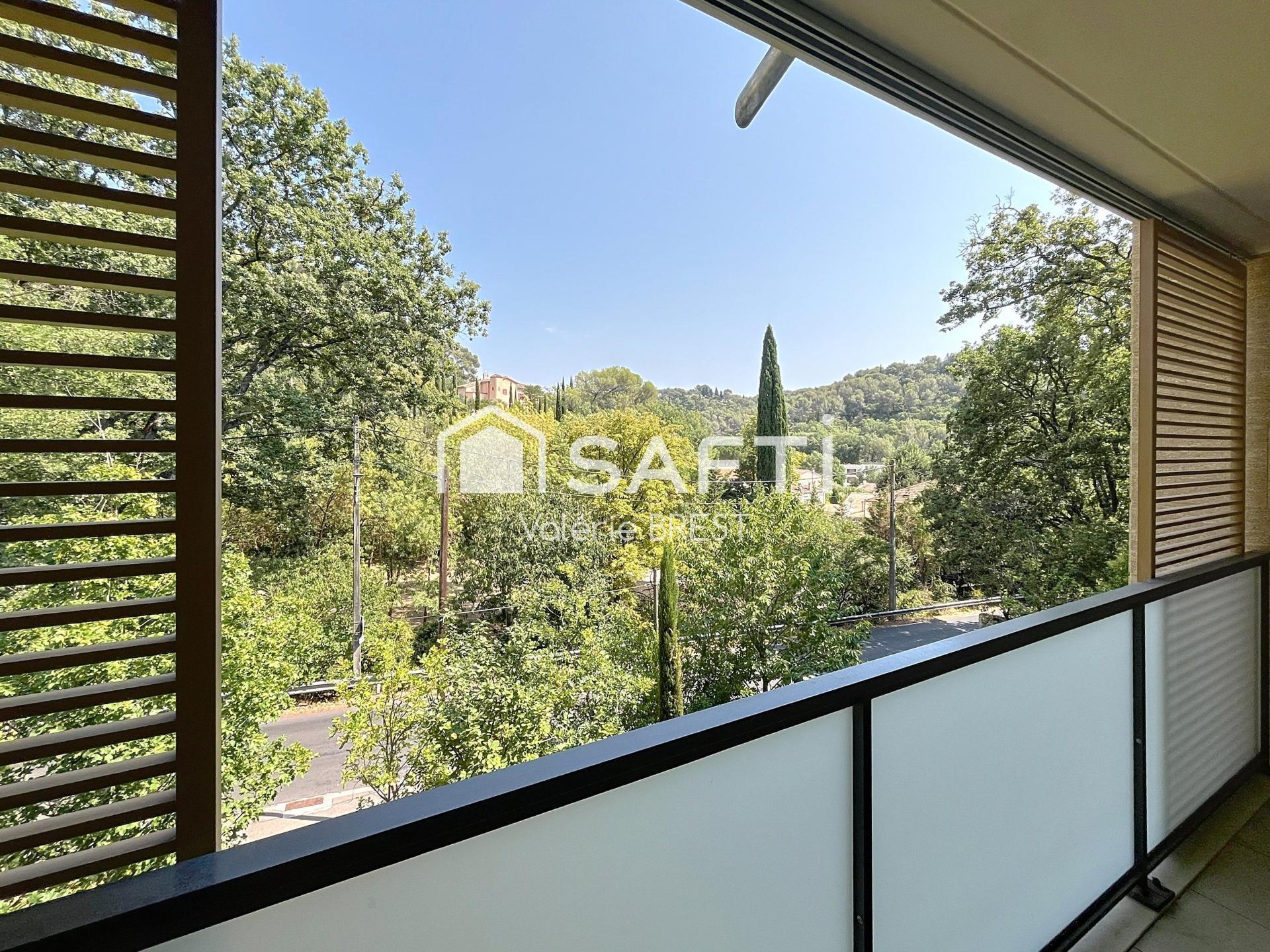 Niché à l'est d'Aix-en-Provence, cet appartement offre un cadre résidentiel paisible, entre bastides provençales et nature préservée. Ici, le calme et la verdure côtoient les commodités du centre, à quelques minutes seulement. Cet appartement Aixois offre un cadre de vie entre campagne et ville. Il bénéficie d'un accès facilité aux transports en commun tels que les bus, ainsi qu'à des infrastructures scolaires telles que le lycée, idéal pour les familles. L'environnement sécurisé et la présence d'un ascenseur rendent la vie quotidienne pratique et agréable. L'appartement présente de nombreux atouts extérieurs, notamment deux terrasses spacieuses de 28m2 et 14m2 offrant des espaces extérieur privilégiés, ainsi qu'un box pour deux places de parking, assurant praticité et sécurité pour les véhicules des résidents. D'une surface habitable de 99 m², cet appartement de type 4 construit en 2020 offre un agencement fonctionnel et moderne. Le séjour lumineux de 49m2 s'ouvre sur la terrasse, offrant un espace de vie convivial. La cuisine ouverte équipée d'un îlot central ajoute une touche de modernité. Côté nuit, on retrouve trois chambres dont une suite et sa salle de douche et une autre avec sa terrasse privative de 14m2 et dressing, une salles de bain, et un garage double en supplément. Les toilettes séparées, les placards intégrés et le confort de la climatisation gainée ajoutent au charme de ce bien d'exception. Vidéo de visite instantanée sur demande. Le bien comprend 1 lot, et il est situé dans une copropriété de 65 lots (les charges courantes annuelles moyennes de copropriété sont de 1552 et le syndicat des copropriétaires ne fait pas l'objet d'une procédure citée à l'article L. 721-1 du code de la construction et de l'habitation). Les informations sur les risques auxquels ce bien est exposé sont disponibles sur le site Géorisques : Prix de vente : 749 000 Honoraires charge vendeur Contactez votre conseiller Safti : Valérie Brest - Ei - Agent commercial immatriculé au Rsac de Marseille sous le numéro