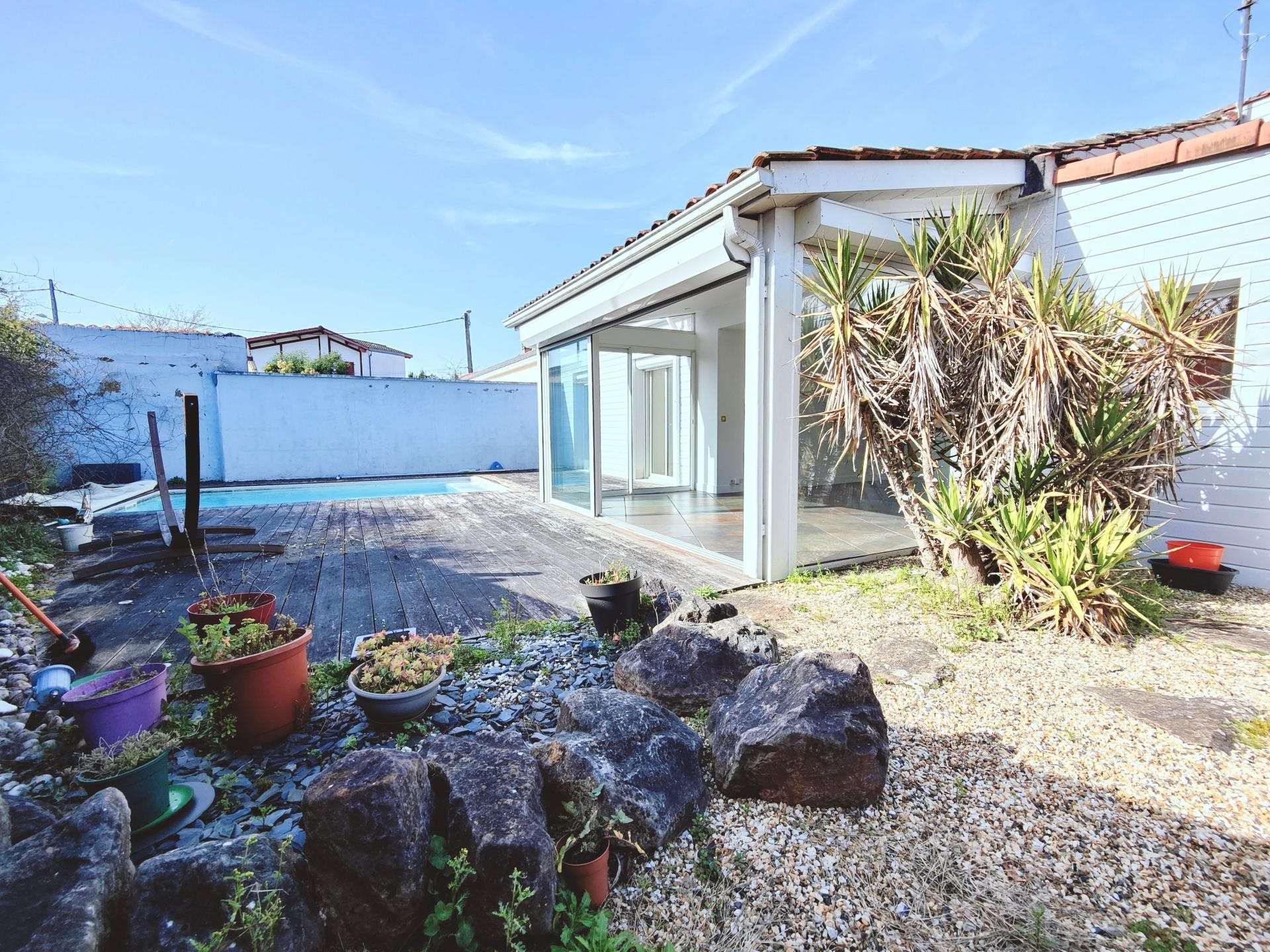 Coup de coeur assuré pour cette belle maison T5 de plain pied de 85 m² , non mitoyenne, au calme et proche des commodités. Vous serez séduit par sa grande pièce de vie lumineuse ouverte sur sa piscine chauffée et terrasse, sa cuisine ouverte, son cellier buanderie attenant, ses 3 chambres avec dressing, son bureau, sa salle d'eau avec douche à l'italienne et Wc. A l'extérieur, vous pourrez profiter d'une belle piscine, d'une grande terrasse en bois exotique, d'un jardin avec une seconde terrasse et un abri de jardin. Vous pourrez également garer 2 voitures sur la parcelle. Les +: au calme, de plain pied, piscine, 2 parkings, proche écoles, commerces et bus-Tram. Les informations sur les risques auxquels ce bien est exposé sont disponibles sur le site Géorisques : Prix de vente : 414 900 € Honoraires charge vendeur Contactez votre conseiller Safti : Christophe Joie, Tél. : , E-mail : - Ei - Agent commercial immatriculé au Rsac de Bordeaux sous le numéro 881 549 489
