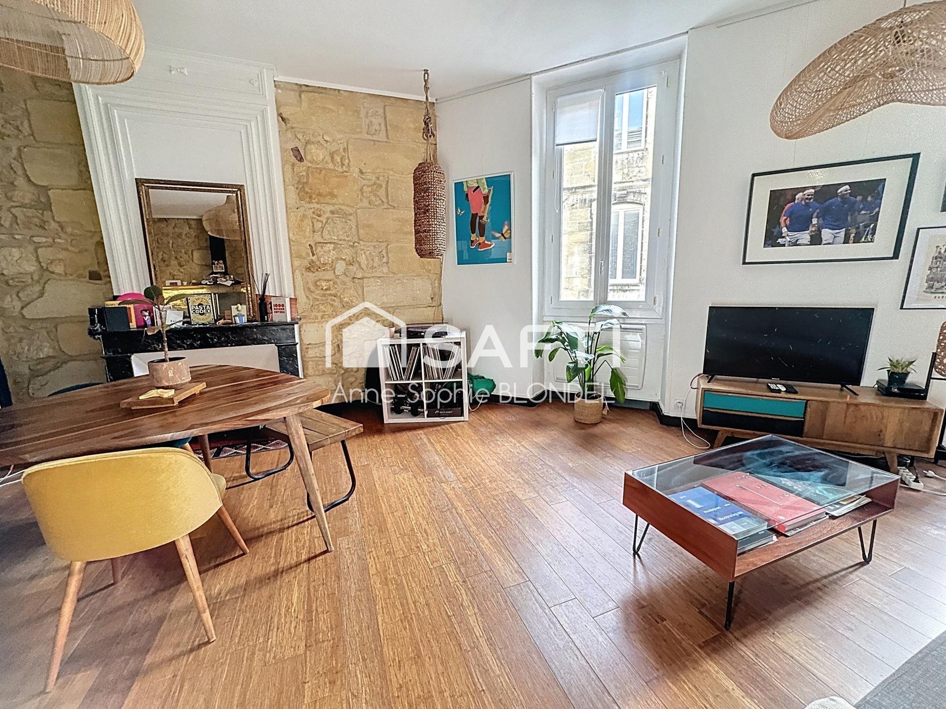 Au sein de la charmante " rue du hamel", reconnue pour son caractère historique, à deux pas des quais, de la place St Michel de toutes commodités ,Tram lignes C-D-F, à 400m venez découvrir ce beau T2 spacieux et lumineux . Au premier étage d'une petite copropriété de 4 lots, vous serez séduit par la rénovation soignée ayant conservé toutes les caractéristiques de l'ancien : mur en pierres, cheminée et plancher Cet appartement traversant est composé d'une entrée desservant une pièce de vie lumineuse, une véritable cuisine équipée, une chambre avec dressing donnant sur l'arrière, une salle de douche et wc séparés. Vous bénéficierez également d'un "espace machine" indépendant, et d'une cave . Un bien idéal pour les jeunes actifs, ou étudiants en recherchent de calme à proximités du confort urbain. Venez vite découvrir cette pépite ... Contactez moi , . Ne pas se fier à la localisation du bien sur certains sites. Le bien comprend 2 lots, et il est situé dans une copropriété de 4 lots (les charges courantes annuelles moyennes de copropriété sont de 150 € et le syndicat des copropriétaires ne fait pas l'objet d'une procédure citée à l'article L. 721-1 du code de la construction et de l'habitation). Les informations sur les risques auxquels ce bien est exposé sont disponibles sur le site Géorisques : Prix de vente : 245 000 € Honoraires charge vendeur Contactez votre conseiller Safti : Anne-Sophie Blondel, Tél. : , E-mail : - Ei - Agent commercial immatriculé au Rsac de Bordeaux sous le numéro 888 784 907