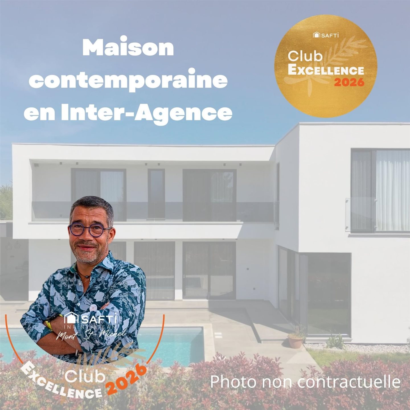 À proximité immédiate du centre d’Avranches, de ses commerces, écoles et services, superbe maison contemporaine en ossature bois construite en 2023, conforme à la norme Re 2020 et offrant de très faibles consommations énergétiques. D’Une surface habitable d’environ 158 m², elle propose au rez-de-chaussée une entrée, une vaste pièce de vie lumineuse d’environ 47 m² avec cuisine aménagée et équipée, salle à manger avec poêle à granulés et salon, une arrière-cuisine/buanderie, Wc et une suite parentale avec chambre, dressing et salle d’eau. À l’étage, une chambre avec salle d’eau privative et accès terrasse, deux autres chambres dont une avec accès terrasse, ainsi qu’une salle d’eau avec Wc. Garage d’environ 28 m². À l’extérieur, grande terrasse bois avec pergola, piscine chauffée par pompe à chaleur avec volet roulant, solarium, parkings, jardin et bois d’environ 3 800 m² avec deux abris. Aucun vis-à-vis, exposition sud, le tout sur un terrain d’environ 5 324 m². Les informations sur les risques auxquels ce bien est exposé sont disponibles sur le site Géorisques : Prix de vente : 766 500 € Honoraires charge vendeur Contactez votre conseiller Safti : Éric Dewilde, Tél. : , E-mail : - Ei - Agent commercial immatriculé au Rsac de Coutances sous le numéro 893 302 547