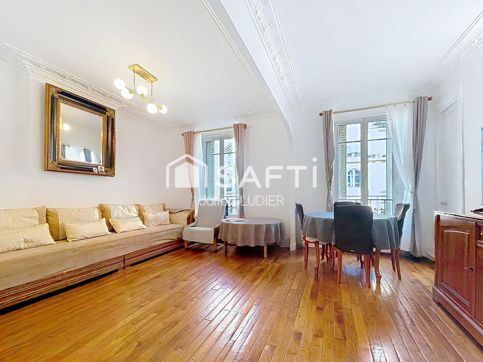 Bel appartement traversant de 3 pièces (à l'origine 4 pièces) d’environ 67 m2, calme et lumineux, double exposition avec vue dégagée, au 5ème et dernier étage, sans ascenseur, d'un immeuble de 1920 bien entretenu. Disposition en étoile, bien agencé, sans aucune perte de place, distribuant un double séjour salon / salle à manger, deux grandes chambres avec placards, une cuisine fermée, une salle de bain, un wc séparé. Charme de l’ancien avec parquet, moulures, 2,70 m de hauteur sous plafond. Excellente isolation thermique et acoustique, double vitrage. Peintures récentes, chaudière au gaz neuve. Une cave d’environ 8 m2 complète ce bien. Boulogne Nord : Parchamp Albert Kahn, sécurisé et animé. Proximité : tous commerces, marché Escudier, établissements scolaires réputés, Bois de Boulogne. Au pied du métro Jean Jaurès L10, des lignes de bus 52, 123. (+ lignes 52, 260, Subb...). À étudier : acquisition potentielle auprès de la copropriété des combles lui appartenant pour un projet de duplex. Le bien comprend 2 lots, et il est situé dans une copropriété de 56 lots (les charges courantes annuelles moyennes de copropriété sont de 1932 € et le syndicat des copropriétaires ne fait pas l'objet d'une procédure citée à l'article L. 721-1 du code de la construction et de l'habitation). Les informations sur les risques auxquels ce bien est exposé sont disponibles sur le site Géorisques : Prix de vente : 735 000 € Honoraires charge vendeur Contactez votre conseiller Safti : Julien Ludier, Tél. : , E-mail : - Ei - Agent commercial immatriculé au Rsac de Nanterre sous le numéro