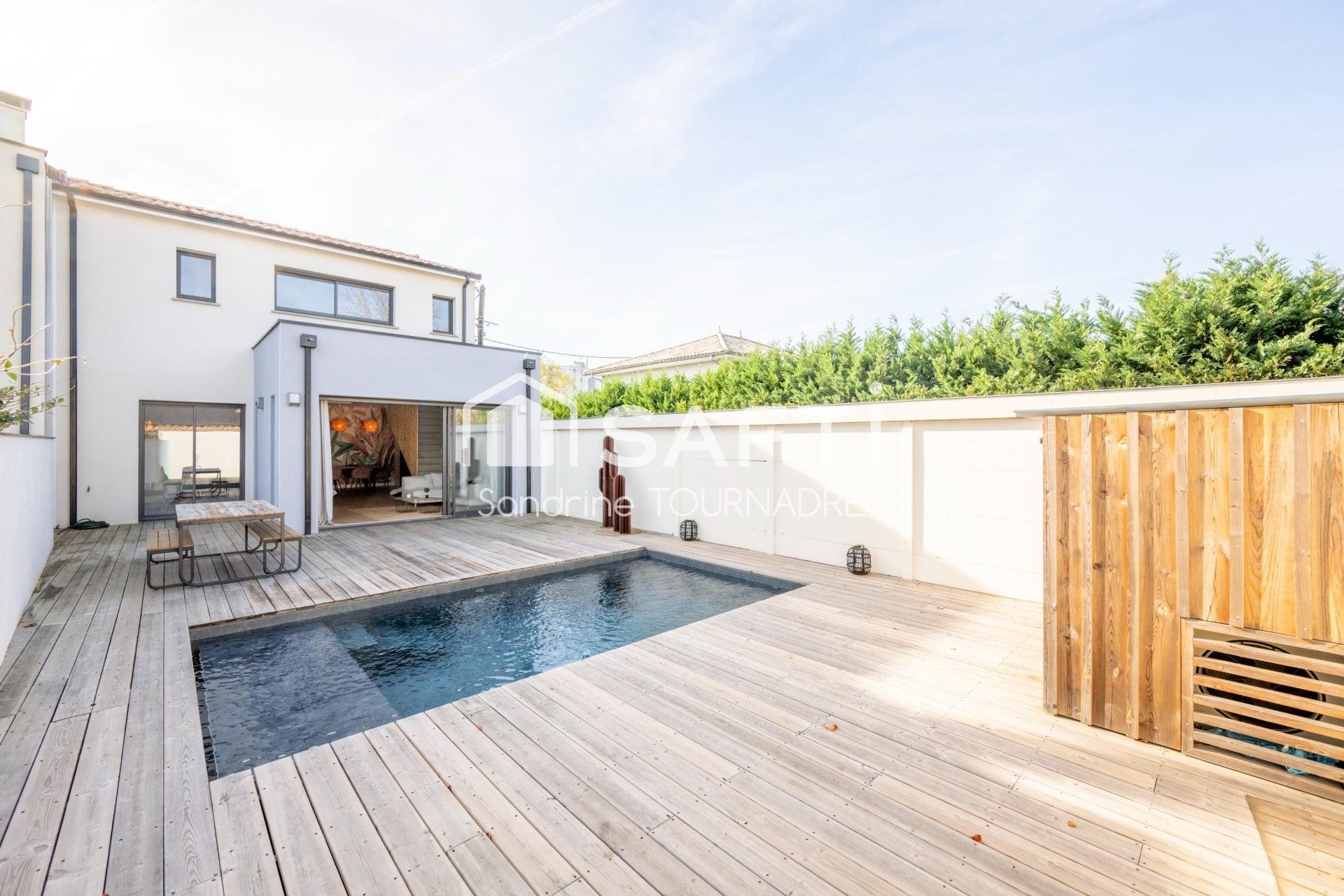 Bordeaux-Cauderan – Laissez-vous séduire par cette élégante maison contemporaine, lumineuse et parfaitement agencée, offrant 124 m² de confort moderne. Dès l’entrée, vous découvrirez une vaste pièce de vie baignée de lumière, comprenant un séjour chaleureux et une cuisine ouverte entièrement équipée, idéale pour partager des moments conviviaux. L’Ensemble s’ouvre sur une belle terrasse exposée ouest de 60 m², agrémentée d’une piscine au sel, chauffée, parfaite pour profiter de la baignade dès les premiers beaux jours. À l’étage, un sol en verre apporte une touche architecturale unique et magnifie la luminosité naturelle. Il dessert deux chambres avec salle d’eau commune, ainsi qu’une suite parentale disposant d'un dressing et d'une salle d’eau. La maison bénéficie de prestations techniques de confort : pompe à chaleur réversible, aspiration centralisée et matériaux de qualité. Un grand garage complète la maison. A 5 min de l'église, la maison se trouve à proximité immédiate des commerces, transports et écoles réputées. Une question ? une visite ? Sandrine Tournadre (Ne pas se fier à la localisation indiquée sur les sites) Les informations sur les risques auxquels ce bien est exposé sont disponibles sur le site Géorisques : Prix de vente : 648 000 € Honoraires charge vendeur Contactez votre conseiller Safti : Sandrine Tournadre, Tél. : , E-mail : - Ei - Agent commercial immatriculé au Rsac de Bordeaux sous le numéro