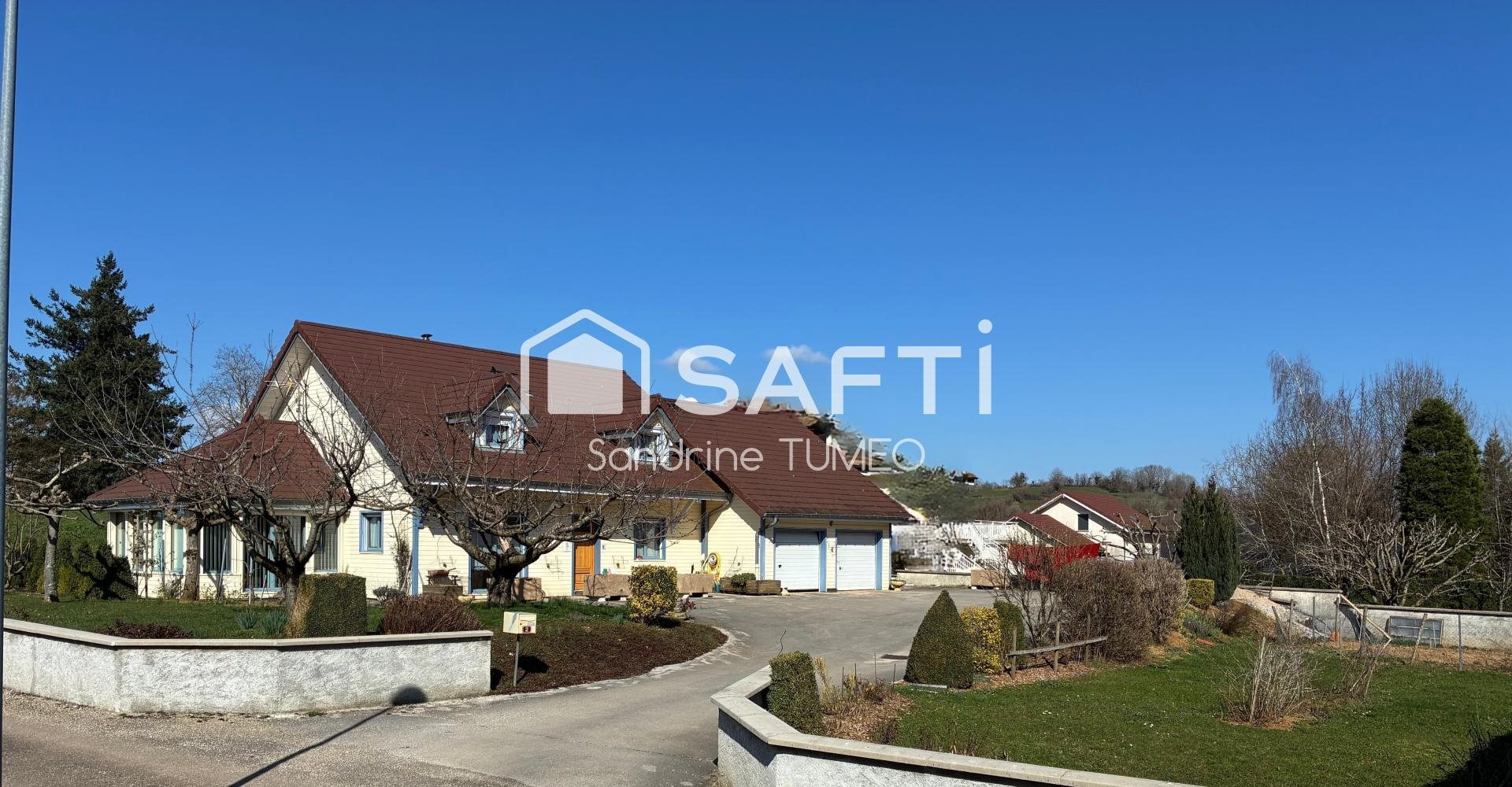À Pupillin, dans un environnement paisible au fond d’une rue en impasse, découvrez cette maison construite en 2007 par l’entreprise Ald en ossature bois. Implantée sur un terrain de 1 357 m², la propriété développe 174 m² habitables répartis sur deux niveaux et offre des volumes confortables pour une vie de famille. L’Habitation se compose de quatre chambres, d’un bureau, de deux salles de bain et d’un bel espace de vie prolongé par une grande véranda apportant luminosité et ouverture sur l’extérieur. Un double garage ainsi qu’une cave viennent compléter l’ensemble. La maison bénéficie de prestations modernes avec des menuiseries bois-alu équipées de volets roulants électriques. La construction à ossature bois assure une excellente performance d’isolation tout en offrant une grande souplesse d’aménagement. Le chauffage est assuré par géothermie, complété par un poêle à bois pour un confort chaleureux au quotidien. Un bien récent, fonctionnel et bien situé, idéal pour profiter du calme tout en restant à proximité d’Arbois et de ses commodités. Une question? Sandrine Tumeo Les informations sur les risques auxquels ce bien est exposé sont disponibles sur le site Géorisques : Prix de vente : 360 000 € Honoraires charge vendeur Contactez votre conseiller Safti : Sandrine Tumeo, Tél. : , E-mail : - Ei - Agent commercial immatriculé au Rsac de Lons-Le-Saunier sous le numéro 920 234 556