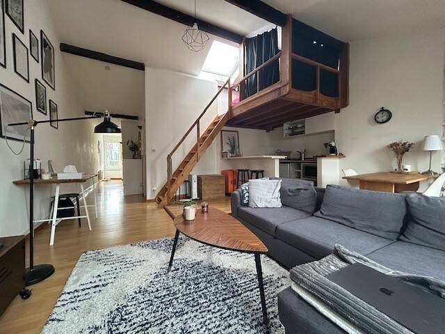 Idéalement situé, au cœur du dynamisme lillois et à deux pas de la place de la République, découvrez cet appartement de deux pièces offrant une surface de 46 m2 habitables, complétée par une mezzanine de 6 m2 au sol. Dès l'entrée, vous serez séduit par les volumes et la distribution fluide de l'espace. La pièce de vie principale, lumineuse et accueillante, intègre une cuisine ouverte conviviale. Le salon profite d'une belle hauteur sous plafond permettant l'accès à une mezzanine polyvalente, idéale pour un espace bureau ou un couchage d'appoint. Le coin nuit se compose d'une chambre paisible sans aucun vis-à-vis, garantissant une intimité totale en plein centre-ville. Une salle de douche fonctionnelle et un W.C. Séparé complètent l'intérieur de ce bien en bon état général. Une terrasse privative de 40 m2. Véritable extension de la pièce de vie, cet espace extérieur généreux est une opportunité unique pour profiter des beaux jours au calme, tout en restant à proximité immédiate des commerces et des transports. Possibilité d'acquérir une place de parking securisée.