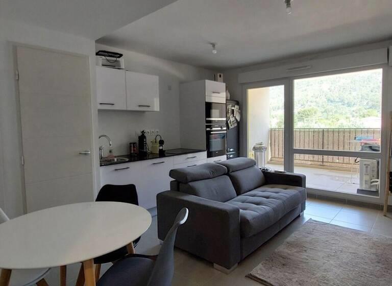 Appartement Cuges Les Pins 2 pièce(s) 36 m2 Cuges Les Pins, à moins de 10' d'Aubagne, bel et récent appartement de type 2 d'env. 37 m² hab avec une terrasse d'env. 7M². Situé au 2ème étage dans une résidence de 2021, cet appartement propose une pièce de vie ouverte d'env. 20 m² avec sa cuisine ouverte, aménagée ét équipée, une chambre d'env. 12 m² et les sanitaires. En très bon état et proche des commodités, il est prêt à vivre ! Pourvu d'une place de stationnement privée en sous sol avec accès direct à l'étage de l'appartement. Soumis au statut de la copropriété dont le montant des charges annuelles s'élèvent à env. 1 200 euros. N'hésitez pas à nous pour toutes demandes de renseignements et/ de visites [Coordonnées masquées]. Copropriété de 20 lots (Pas de procédure en cours). Nr Charges annuelles : 1200 euros. Référence annonce : 2194 Non soumis au Dpe Les honoraires sont à la charge du vendeur A propos de la copropriété : Pas de procédure en cours Nombre de lots : 20 Charges prévisionnelles annuelles : 1200 €.Demander plus d'informations