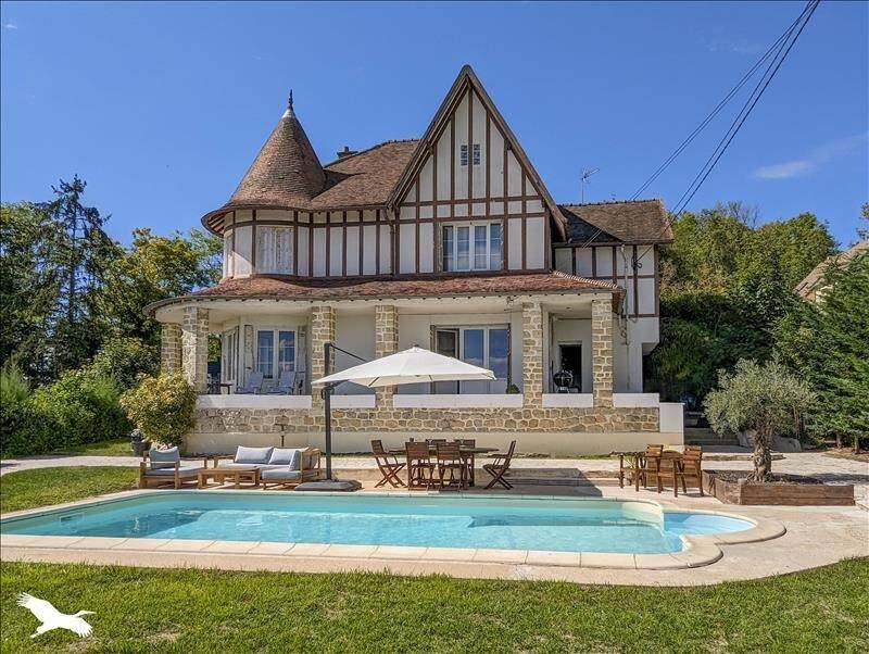 Vue imprenable sur la vallée de la Mauldre et sans aucun vis à vis, cette lumineuse villa Anglo-Normande dispose d'un double séjour, cuisine, buanderie, quatre chambres dont une parentale avec Sdb privative, 2 Sdd. Une piscine chauffée, deux garages et des ca...