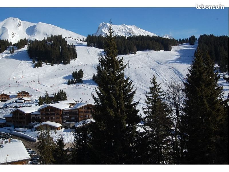 A Manigod, au col de la Croix Fry, limite avec la Clusaz. Aux pieds des pistes de Manigod et La Clusaz, et du plateau de Beauregard. Studio très lumineux d'environ 27 m², au premier étage, et donnant sur deux façades (Sud et Ouest), avec coin nuit fermé et fenêtre, autre coin nuit dans le couloir, une salle de bains avec fenêtre, un séjour avec coin cuisine et balcon de 5 m². Vendu meublé, avec une cave et un casier à skis. Charges annuelles de copropriété : 975 euros incluant le chauffage électrique au sol. Diagnostics en cours.