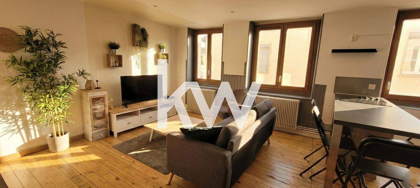 En exclusivité ! Venez découvrir cet appartement présenté par Gaëlle Royet Keller Williams Forez Vert. Cet appartement T4 en duplex de 77,9 m² est situé au 1er étage sans ascenseur d'une petite copropriété au 134 Boulevard Valbenoîte. Il est proposé à la vente entièrement meublé, équipé et décoré, permettant une installation immédiate. L'appartement présente des éléments de caractère, notamment du parquet et des volumes atypiques. L'agencement comprend une pièce à vivre ouverte sur la cuisine, ainsi que trois chambres, dont une chambre principale avec salle d'eau (suite parentale). Les menuiseries sont en bois double vitrage, et le chauffage et l'eau chaude sont individuels au gaz. Charges de copropriété : 49 euros / mois. La taxe foncière s'élève à 821 euros par an. Nombre de lots : 40 Ce bien constitue une option intéressante pour une habitation principale ou un placement locatif meublé. Prix de vente : 97 000 euros (Honoraires d'agences à la charge du vendeur) Les informations sur les risques éventuels liés à ce bien sont disponibles sur le site Géorisques. Cette annonce a été rédigée par Gaëlle Royet, agent commercial enregistrée sous le n° Rsac 838 676 161 au Tribunal de commerce de Saint-Etienne. Honoraires à la charge du vendeur. Dans une copropriété de 24 lots. Quote-Part moyenne du budget prévisionnel 588 euros/an. Aucune procédure n'est en cours. Classe énergie E, Classe climat E Montant estimé des dépenses annuelles d'énergie pour un usage standard : entre 1873.00 euros et 2533.00 euros sur les années 2021, 2022 et 2023 (abonnements compris). Les informations sur les risques auxquels ce bien est exposé sont disponibles sur le site Géorisques : . Votre conseiller Kw Forez Vert : Agent - Gaëlle Royet Carte T
