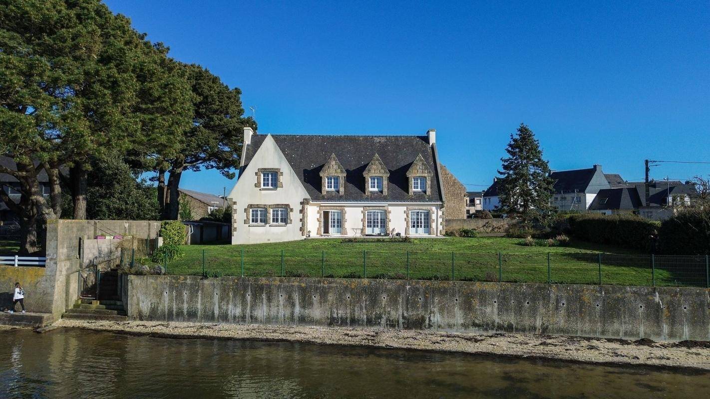 Port-Louis -Exceptionnel en bord de mer Cette élégante maison cossue bénéficie d'une vue panoramique spectaculaire sur la mer et l'activité nautique de la rade de Lorient, avec un accès direct à la plage depuis son grand jardin arboré et paysager de plus de 1 200 m². Développant environ 270 m² habitables, elle offre de généreux volumes et un fort potentiel pour un projet ambitieux. Le rez-de-chaussée comprend une entrée avec vestiaire, un Wc indépendant, une grande cuisine indépendante de plus de 22 m² avec arrière-cuisine et accès à la cave en sous-sol, ainsi qu'un vaste salon-séjour d'environ 56 m² avec cheminée, bénéficiant d'une hauteur sous plafond de 2,60 m, de superbes vues mer et d'un accès direct à une magnifique terrasse exposée ouest à quelques pas de la plage. Un espace bureau et une suite parentale avec chambre, salle d'eau et Wc complètent ce niveau. À l'étage, une seconde suite avec vue mer (chambre, salle d'eau, Wc et rangements), quatre grandes chambres de 13,5 à 17 m² et une salle de bains permettent d'accueillir famille et amis dans un confort optimal. Un rafraîchissement global de la maison est à prévoir afin de révéler pleinement tout son potentiel et de la mettre au goût du jour. Idéalement située, la propriété se trouve à seulement 3 minutes du bourg et des commerces de Port-Louis. Référence agence : 1512