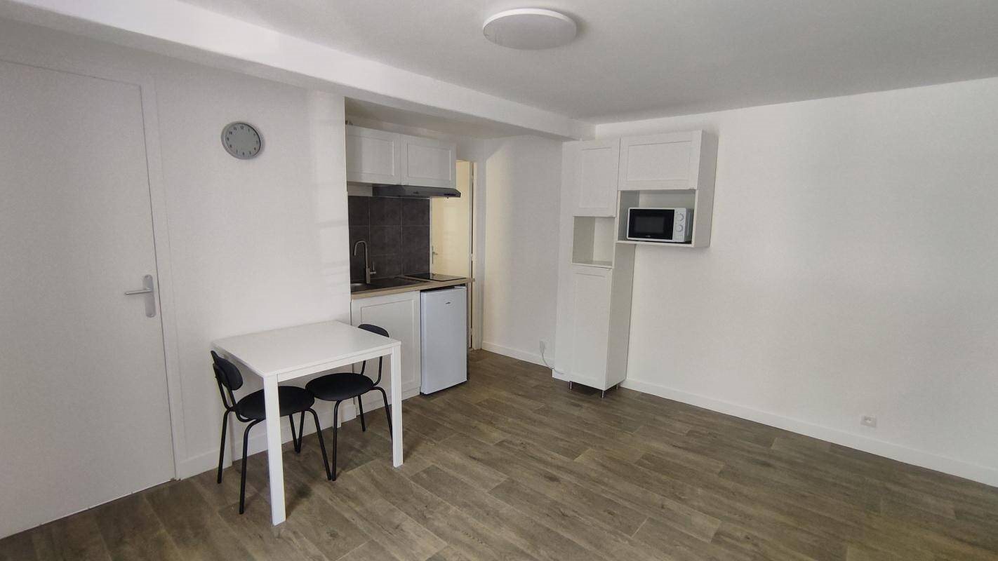 A 7 min. À pied de la gare. Appartement meublé entièrement refait à neuf comprenant : pièce à vivre avec kitchenette, salle d'eau avec wc, coin nuit. Eau froide, entretien et électricité des parties communes inclus dans les charges. Disponible à partir du