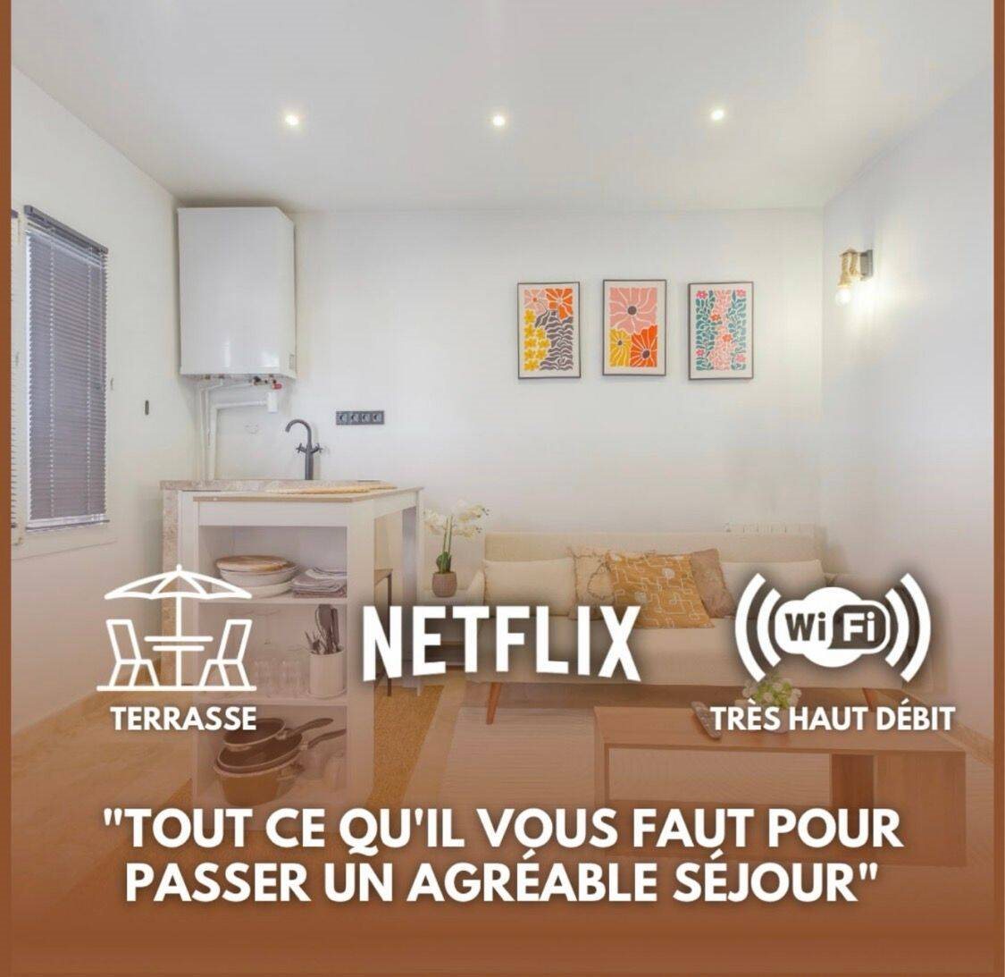 Appartement en maison sur jardin & cour privée clôturée situé en voie privée également fermée , calme tel en campagne … Meublé & décoré moderne avec goût , tv connectée , chaînes multiples et applications tel C+ , netflix , sports et autres ( écran cinéma ...