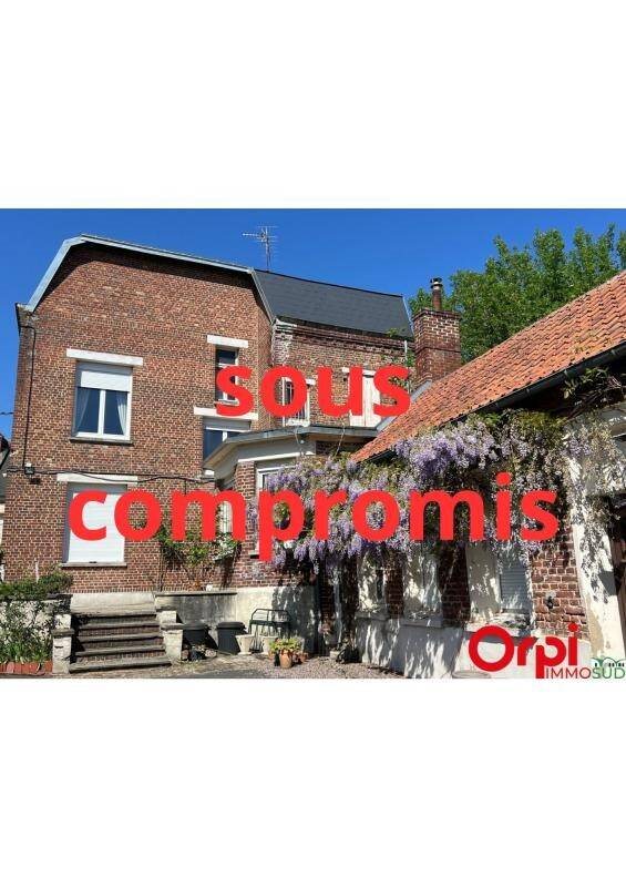 Secteur Ham : Jolie maison bourgeoise de 185 m2 comprenant au rez de chaussée couloir, desservant un salon et un séjour, bureau et cuisine, wc. Au premier étage : beau palier desservant 4 chambres, une salle de bains et un coin wc à refaire. Au deuxième étage : grenier aménageable. Cave dépendances en nature de remise et 8 garages. Grand terrain de 3150 m2 env. 140 500 euros Hai (honoraires charge vendeur) Orpi Immosud Dury Rcs Amiens Représentée par Sonia Lafolie et agissant en sa qualité d'agent commercial mandataire immobilier indépendant, régulièrement inscrit au Rsac sous le numéro siret 911 113 157 Sonia Lafolie ou Référence agence : 1237