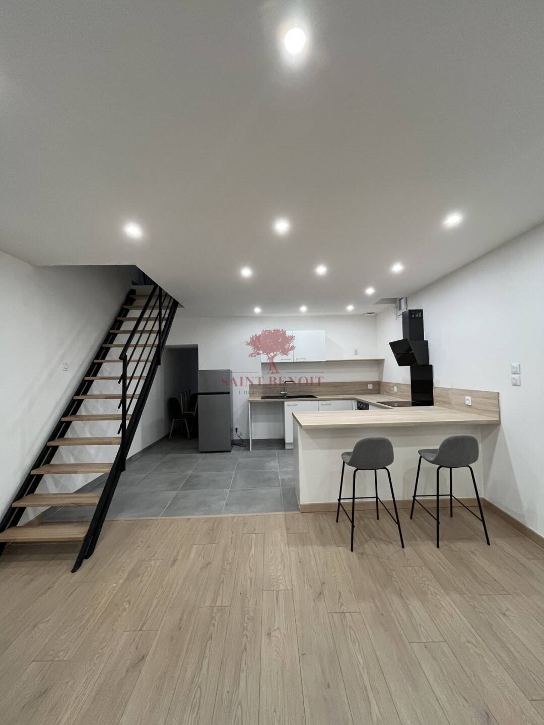 Exclusivite A Montpeyroux Nous vous proposons en exclusivité cette agréable maison Meublee. Au rez-de-chaussée, vous trouverez un garage /remise ainsi qu’une cour, offrant des espaces pratiques et fonctionnels. Le premier étage se compose d’un couloir desservant une chambre, une salle d’eau, un Wc séparé avec lave-mains, une cuisine aménagée et équipée ouverte sur le séjour, un bureau ainsi qu’une terrasse idéale pour profiter de l’extérieur. Au deuxième étage, la maison offre deux chambres mansardées et une salle d’eau avec Wc. L’Ensemble du logement est équipé de la climatisation réversible, garantissant un confort optimal en toute saison. Pour plus d’informations ou pour organiser une visite, veuillez votre agence Saint Benoit Immobilier.