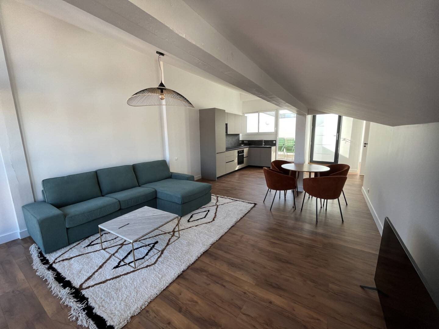 Dans le centre-ville de Saint Jean de Luz, au 4ème et dernier étage avec ascenseur d'une résidence, superbe 3 pièces entièrement rénové et meublé avec goût. Ce bien offre une belle pièce de vie avec cuisine ouverte équipée tout confort et ouvrant sur une agérable terrasse, deux chambres dont 1 avec placard, une salle d'eau avec Wc. Une place de parking couverte vient compléter le bien. Suarface habitable : 59.11m2 Surface non habitable 31.62m2 Prestations et matériaux de qualité A visiter sans tarder. Loyer : 1383€/mois charges comprises dont 50€ de provisions pour charges avec régularisation annuelle Dépôt de garantie : 2666€ Honoraires charge locataire : 768.43 dont 177.33€ de frais d'état des lieux