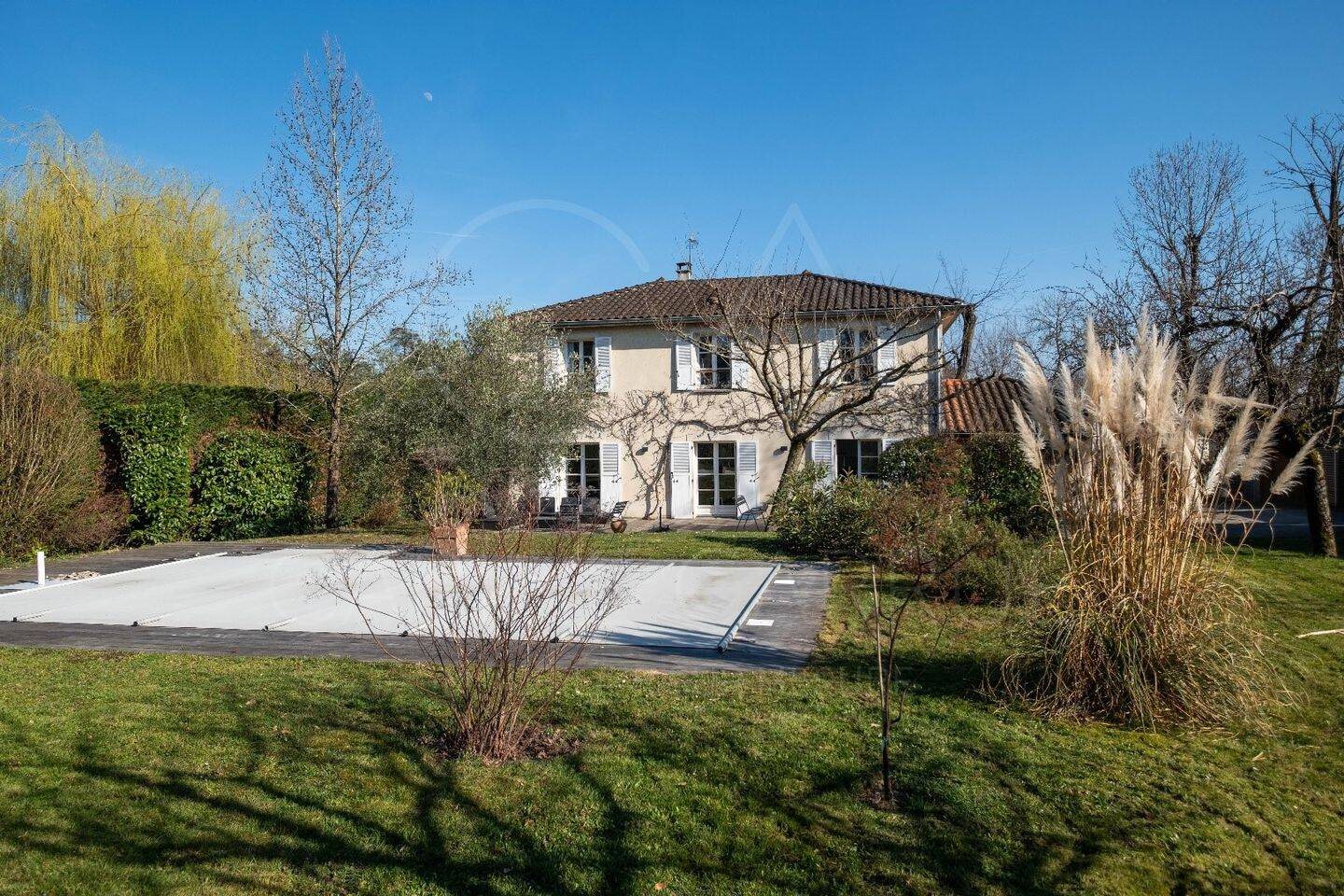 En Exclusivité Agence, dans un secteur calme et très prisé de Charbonnières-les-Bains, belle maison de charme de 182 m2 entièrement rénovée sur son grand terrain clos de 1 500 m2, avec piscine. Des espaces de vie ouverts et lumineux, salon/salle à manger traversant Est/Ouest (50 m2) et cuisine (14m2), s'articulent autour d'un bel équilibre entre intimité et réception. La cuisine haut de gamme, entièrement équipée, est prolongée par un cellier. Une familiy room de 22 m2 (salle de jeux - salon de musique -.. / suite parentale de plain-pied possible) et un espace bureau de 9 m2 complètent le rez-de-jardin. La cuisine et le salon prolongent naturellement leurs espaces vers une superbe terrasse en ipé, invitant à la détente face au jardin et à la piscine. Le terrain, plat et soigneusement paysagé, compose un véritable écrin de nature où chaque perspective a été pensée pour magnifier la vue. L'étage dédié à la nuit est composé de 3 chambres spacieuses équipées de rangements (13 m2, 14 m2, 14,5 m2), d'une salle de bain, et d'une suite parentale de 24 m2. Une demeure à la fois élégante et chaleureuse (cheminée en pierre, parquets en chêne massif, encadrements et linteaux en pierre, volets traditionnels en bois, ..), qui allie parfaitement confort, luminosité et art de vivre en harmonie avec son environnement. Un cartport abrite jusqu'à 3 voitures. Côté Tcl, les lignes n°5 et 86 ainsi que le Jd pour le Sacré Coeur se trouvent à proximité.