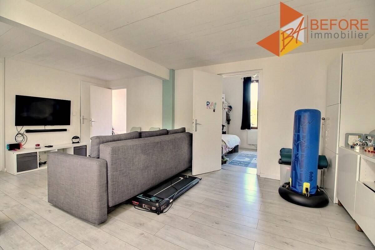 Au coeur du village, dans un secteur tranquille à proximité de toutes les commodités (commerces, santé, éducation, sport, mairie..) beau T4 en duplex. Dans une petite copropriété aux charges très faibles (200€/an) bel appartement refait à neuf en 2015 comprenant au premier niveau une grande pièce à vivre avec cuisine ouverte, coin repas, salon Tv, 2 chambres, salle de bains, Wc séparé. A l'étage une grande chambre mansardée avec un dressing de 20 m². Vendu avec une cave de 5m². Chauffage par climatisation réversible, l'appartement est classé en C, avec une consommation annuelle très faible. La cuisine reste équipée avec tout son électro ménager. L'appartement est particulièrement lumineux, le secteur est très calme, toutes les commodités sont accessibles à pied. A voir au plus vite!! Bien présenté par Agences de France par délégation. Agences de France – Siren : – Titulaire de la carte T : non habilité à percevoir des fonds