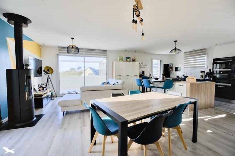Maison de 2018 située dans un environnement calme et proche de l'Aber aux prestations et finitions de qualité. Elle offre un bel espace de vie donnant accès à une terrasse à la vue dégagée et une piscine intérieure. Vie de plain-pied avec sa suite parentale, trois chambres à l'étage dont deux avec salle d'eau, garages et sous-sol.