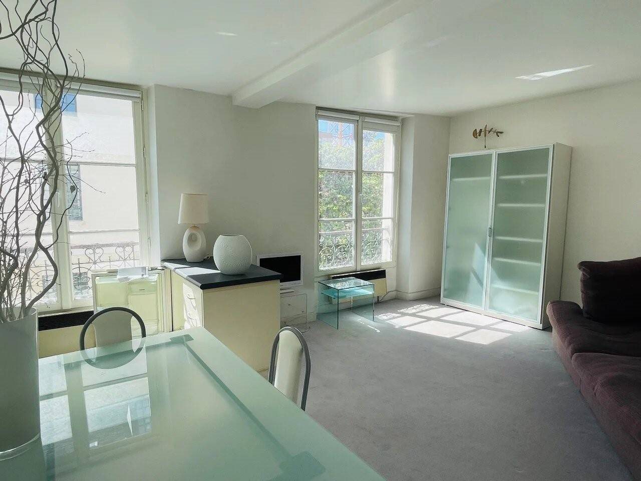 Vaste studio en bon état, cheminée, composé d'un coin cuisine équipé, salle d'eau avec Wc, clair et calme. Dans un bon immeuble ancien de caractère. Au 2ème étage sans ascenseur.
