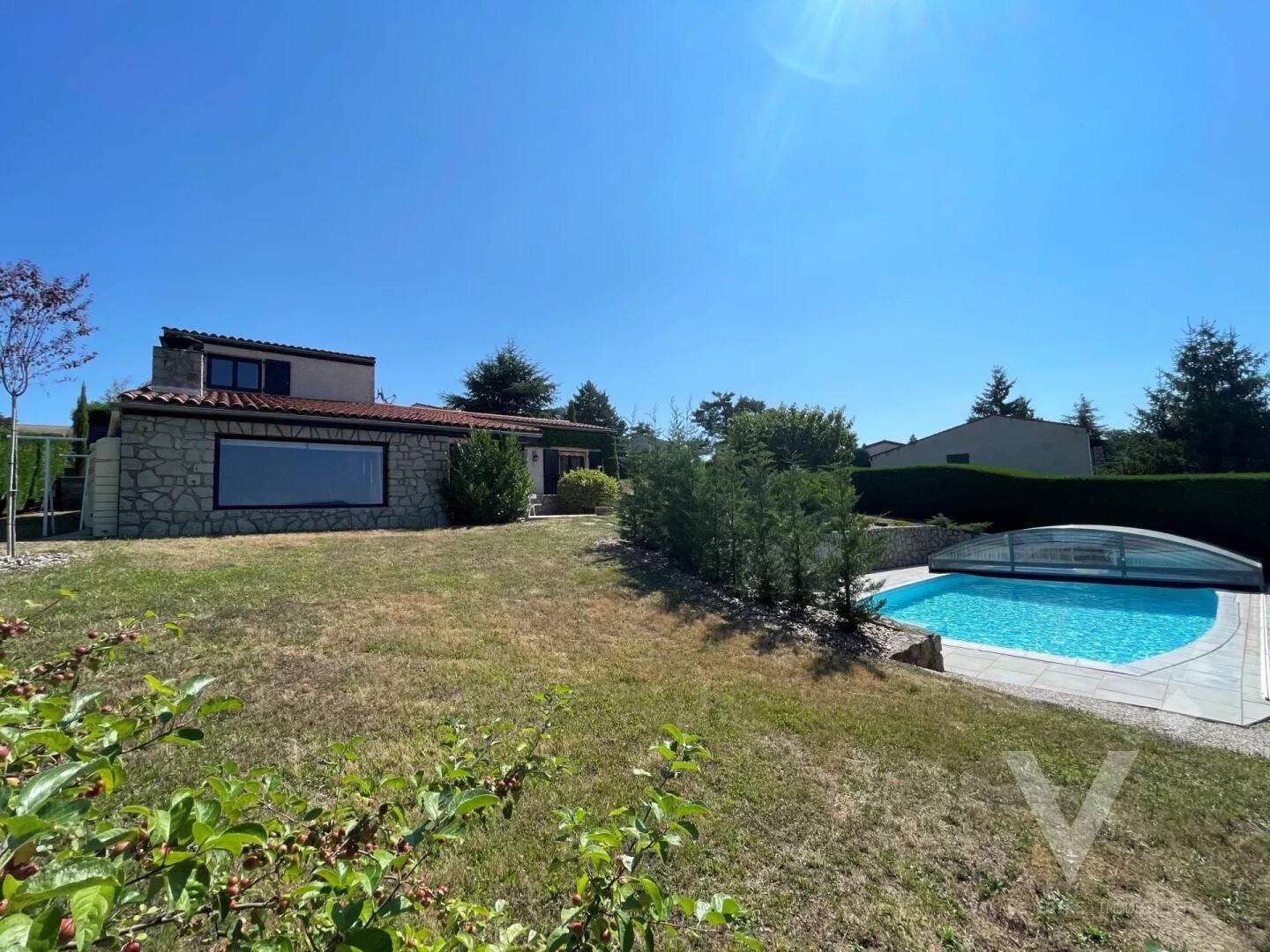 Nouveauté Chez Val De Loire Immobilier Contact : Maxime Boncori au O7 71 O8 24 25 Monistrol / Loire A 30 min de St Etienne et à 1h15 de Lyon Dans le très prisé lotissement de La Rivoire Au calme, sans vis à vis et avec Vue Exceptionnelle Villa avec piscine et dépendances, offrant 151m² habitables sur 1366m² de terrain clos aménagé, arboré et entouré de trois chemins piétonniers Originellement conçue par l’architecte toulousain Erwin Schulz, cette belle habitation typique du secteur et très bien exposée mêle charme de l’ancien et confort actuel Elle se compose comme suit : Au Rez De Chaussée -Séjour lumineux et rénové de 40m² avec cheminée foyer fermé, donnant sur terrasse et jardin et bénéficiant d’une vue privilégiée sur les monts du Velay, Yssingelais et Bassois -Cuisine rénovée de 10.5m² donnant sur terrasse -Chambre de 13.2m² avec grand espace de rangement sous escalier -Chambre de 10.7m² avec grand placard mural -Chambre de 12m² avec 2 placards muraux, donnant sur terrasse -Salle d’eau -Toilettes séparées -Buanderie -Bureau de 14.3m² avec accès indépendant, constituant une option pertinente pour une activité professionnelle libérale A L’Étage -Suite parentale de 15m² comprenant chambre, salle de bains et dressing Côté Dépendances -Piscine de dimensions 10 m 5 m, traitement au sel, avec dôme de sécurité rétractable, rénovée en 2020 (liner, système de filtration et maçonnerie) -Grande terrasse dont 20m² couverts, avec vue panoramique -Garage pour un véhicule avec accès direct vers l’intérieur de la maison -Appentis/Carport de 36m² pour 2 véhicules supplémentaires + stockage bois -Cour goudronnée -Portail motorisé -Abri de jardin Prestations -Convecteurs électriques récents et connectés -Cheminée foyer fermé bois -Double vitrage -Volets battants récents et baies aves volets roulants -Tout à l’égout -Dpe D Ges C Agent commercial(EI) inscrit au Rsac de St Etienne sous le n° Val De Loire - Immobilier 23 rue du commerce 43120 Monistrol Sur Loire
