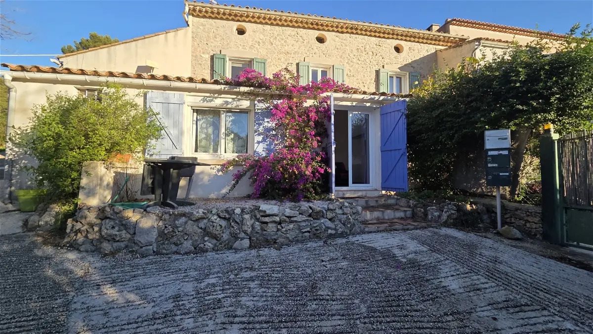 Exclusivite - A louer entre la Cadière et Bandol, un appartement type 3, bas de villa composé d'un séjour avec une cuisine ouverte, une salle d'eau moderne et rénovée, un Wc séparé, une chambre, ainsi qu' une seconde chambre avec placard et cellier. Les avan...