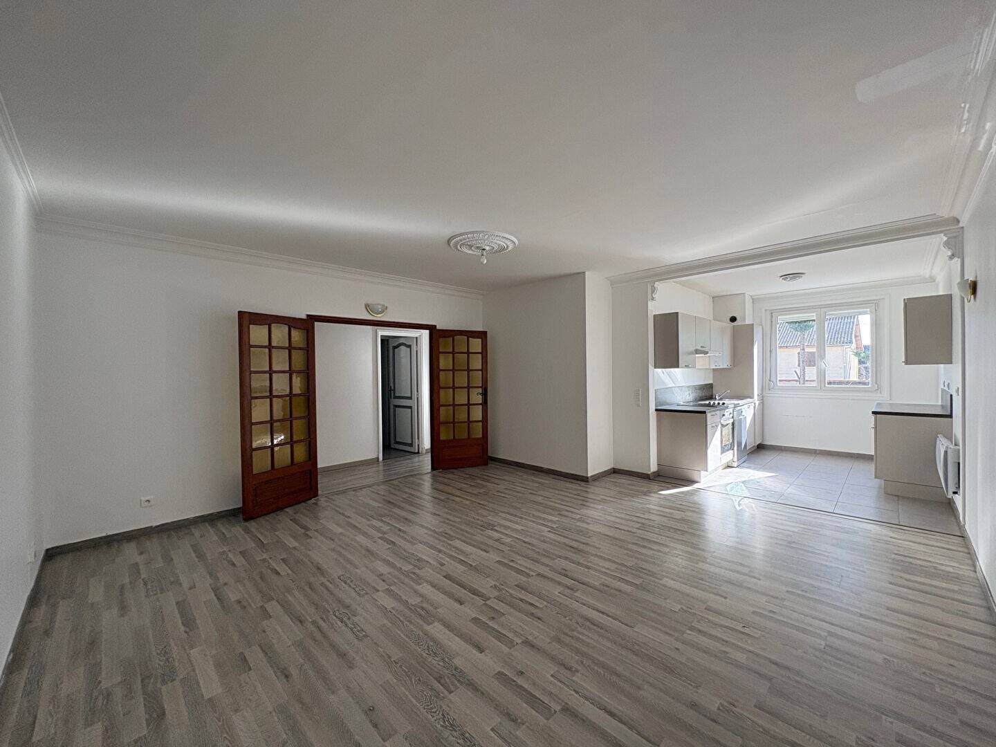Viry chatillon plateau dans petite résidence trois pièces comprenant un salon/séjour avec cuisine ouverte aménagée et équipée, deux chambres, une salle de bains avec baignoire et douche, w-c indépendants et une place de parking en extérieur.