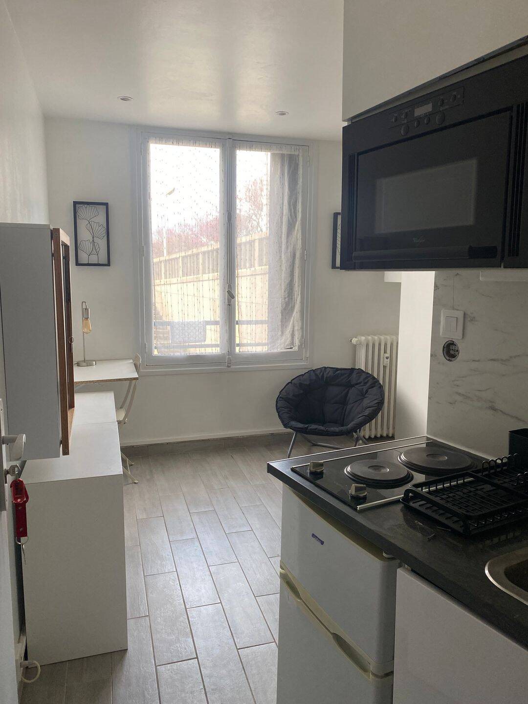 Composé d'une kitchenette et douche, coin bureau, lit escamotable Meublé, armoire de rangement, four micro-onde, frigidaire, congélateur, double plaque de cuisson éléctrique Chauffage collectif Proche porte de Versailles lycée Michelet.