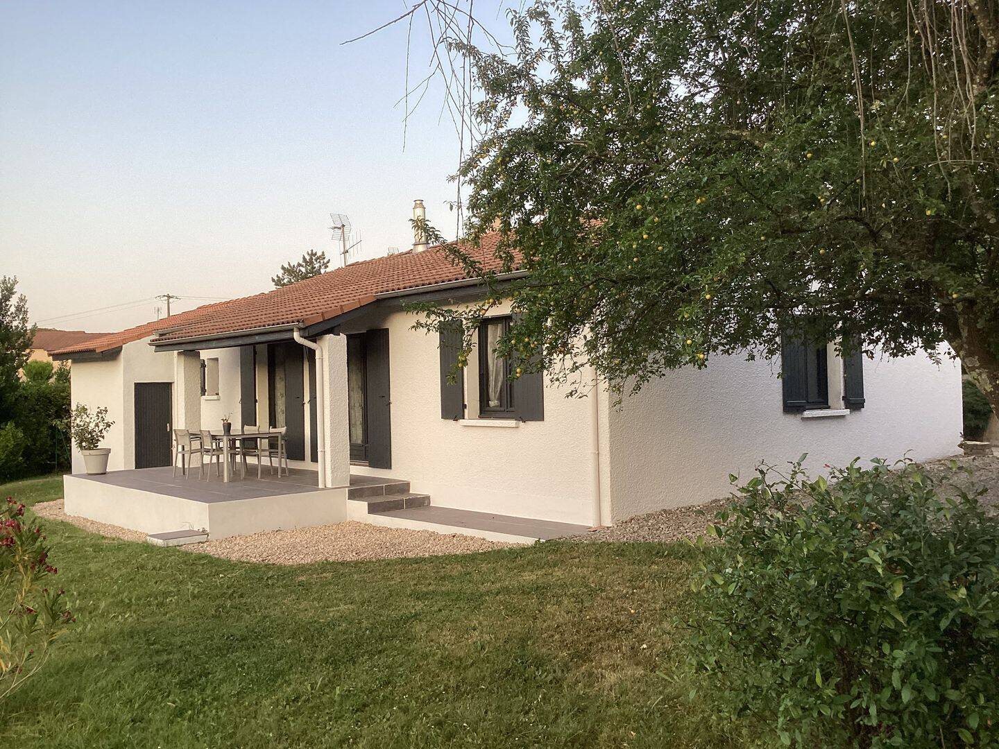 Maison de plein pied , à 5 minutes à pied du centre de Chomerac, dans un quartier très calme d'une surface habitable de 104 m2, composé d'une pièce à vivre d'une surface d'environ 40 m2 avec cuisine intégrée et équipée d'une plaque à induction, une hotte aspirante ...