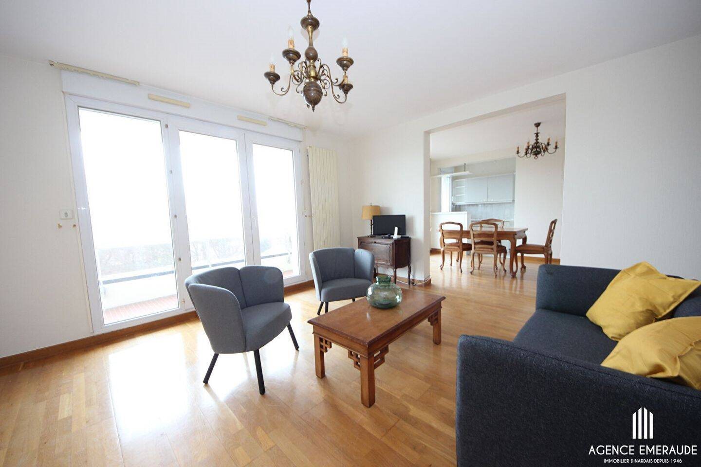 A louer meublé à Dinard hyper centre, grand appartement de type 3 situé au sein d'une résidence de standing. En étage élevé, composé de : entrée, wc, cuisine, spacieux séjour, salon ouvert sur grand balcon, chambre, placard, salle de bain, dégagement, wc, sa...