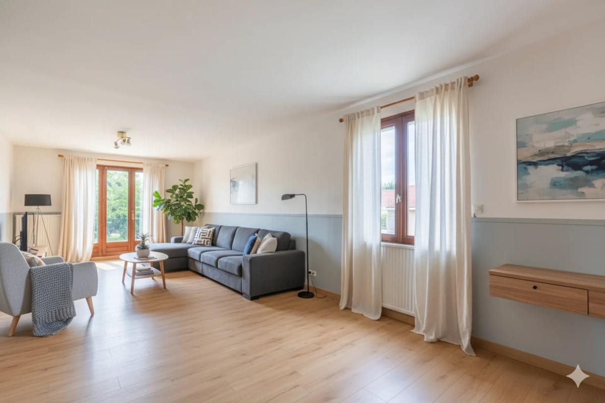 Découvrez cette charmante maison individuelle de 108 m², nichée au bout d'une impasse tranquille à Saint-Bonnet-de-Mure. Construite en 1975, cette propriété offre un cadre de vie paisible et verdoyant, grâce à son vaste terrain arboré de 823 m², idéal pour des moments de détente en plein air. Dès l'entrée, un hall de 4,84 m² vous accueille chaleureusement, menant à un séjour spacieux et baigné de lumière de 34,45 m², parfait pour des moments conviviaux en famille ou entre amis. La cuisine de 10,50 m², prête à être aménagée selon vos envies, complète cet espace de vie accueillant. La maison dispose de quatre chambres confortables (11,38 m², 9,60 m², 9,67 m² et 13,12 m²), d'une salle d'eau de 5,08 m² et d'un Wc séparé, répondant parfaitement aux besoins d'une famille moderne. Le sous-sol est un véritable atout, offrant un garage double de 48 m² pour plusieurs véhicules, ainsi que 30 m² d'espaces de rangement supplémentaires. À l'extérieur, le jardin clôturé et la cour avec stationnement, accessible par un portail manuel, ajoutent à la praticité et au charme de cette propriété. Pour votre confort, la maison est équipée d'un chauffage au fioul sur radiateurs, complété par un poêle à bois d'appoint. Les menuiseries en bois double vitrage et les volets en bois assurent une bonne isolation, tandis que la charpente traditionnelle est en excellent état. Saint-Bonnet-de-Mure est un lieu de vie agréable, avec ses parcs et jardins publics à proximité. Les familles apprécieront la proximité des crèches et des établissements scolaires, de la maternelle au lycée, tous situés à quelques centaines de mètres. Caractéristiques techniques : - Surface : 108 m² - Nombre de pièces : 5 - Nombre de chambres : 4 - Année de construction : 1975 - Surface du jardin : 823 m² - Consommation énergétique : E Mentions légales : Les informations relatives aux risques naturels, technologiques et sismiques peuvent être consultées sur le portail officiel Géorisques : Les éléments présentés dans cette annonce sont fournis à titre informatif et reposent sur les données communiquées par le vendeur. Il appartient aux acquéreurs de vérifier les documents officiels, diagnostics et servitudes auprès des autorités compétentes. Pour toute question, contactez Zefir .