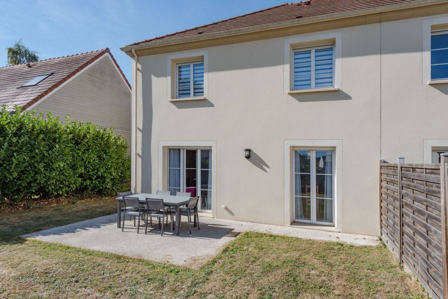 A Chanteloup-en-Brie, maison récente mitoyenne d'un coté. Entrée, beau séjour de 32m² donnant sur la terrasse et le petit jardin, belle cuisine Schmidt ouverte de 10m² , salle d'eau avec W.C., buanderie. A l'étage, 4 chambres, dont uen suite parentale, salled ebains et W.C. Séparés. Un garage indépendant complete la maison. Très bien située en retrait de la rue et proche bois, écoles et commerces aisni que des axes routiers. Disponible au 2 janvier 2026.