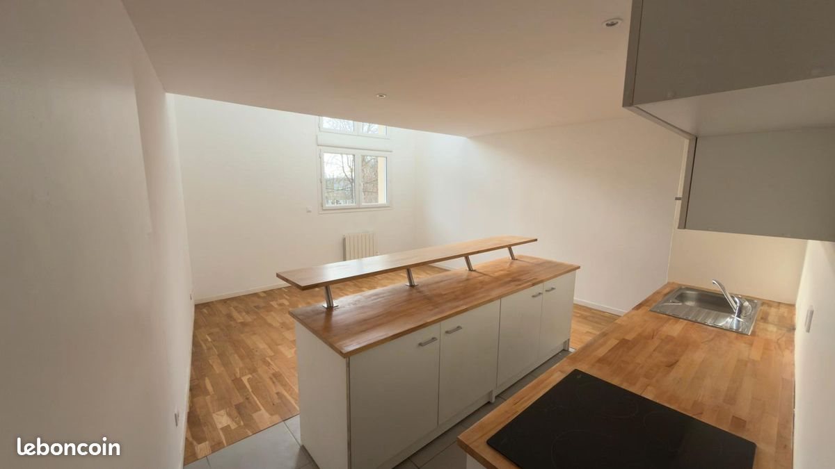 Dans secteur calme et pavillonnaire, appartement en duplex comprenant entrée, séjour avec cuisine ouverte aménagée, buanderie. A l'étage, chambre avec salle d'eau, wc. Vue dégagée sans vis à vis,