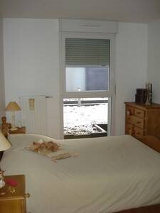 Offemont Cardinal : F2 Récent en rez de jardin comprenant : hall d'entrée avec placard, cuisine équipée ouverte sur salon, une chambre, salle de bains, wc. Cave. Parking. Chauffage collectif individualisé