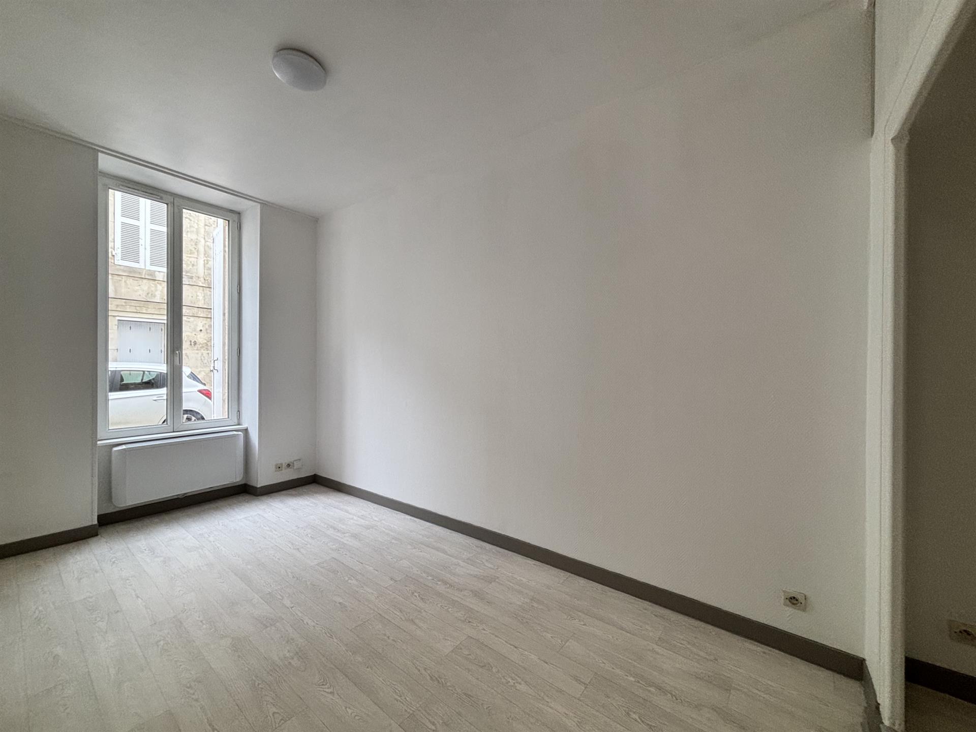 À louer dans le centre-ville de Rochefort un appartement T1 bis au rez-de-chaussée comprenant séjour, cuisine séparée aménagée et équipée (four, plaque et hotte), un bureau ou coin nuit et salle d'eau avec Wc. Chauffage électrique. Disponible de suite. Loyer mensuel charges comprises : 505,00 € Loyer mensuel : 500,00 € Provision mensuelle pour charges : 5,00 € (charges communes générales) Dépôt de garantie : 500,00 € Honoraires d'agence à la charge du locataire : 297,48 € (dont 81,20 € d'état des lieux d'entrée). Les informations sur les risques auxquels ce bien est exposé sont disponibles sur le site Géorisques :